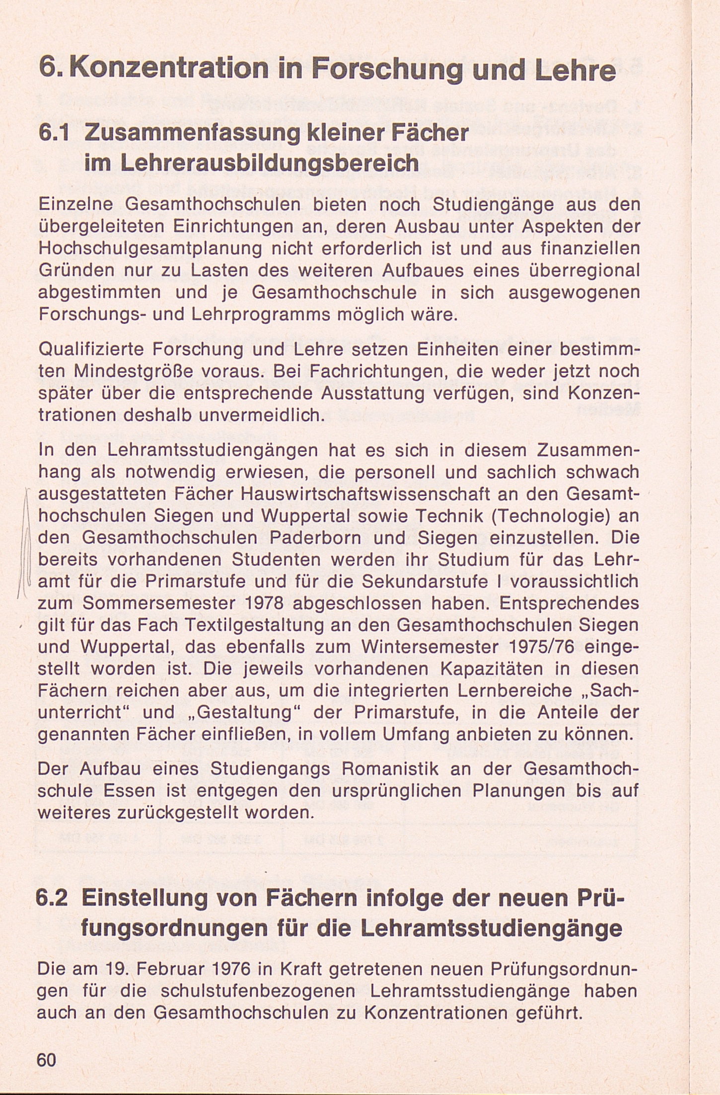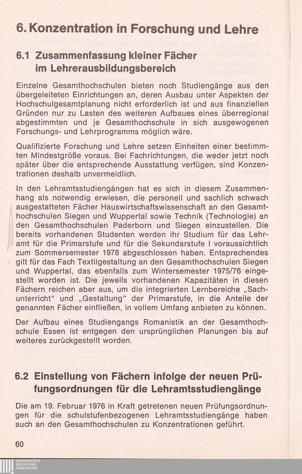 6.1 Zusammenfassung kleiner Fächer im Lehrerausbildungsbereich