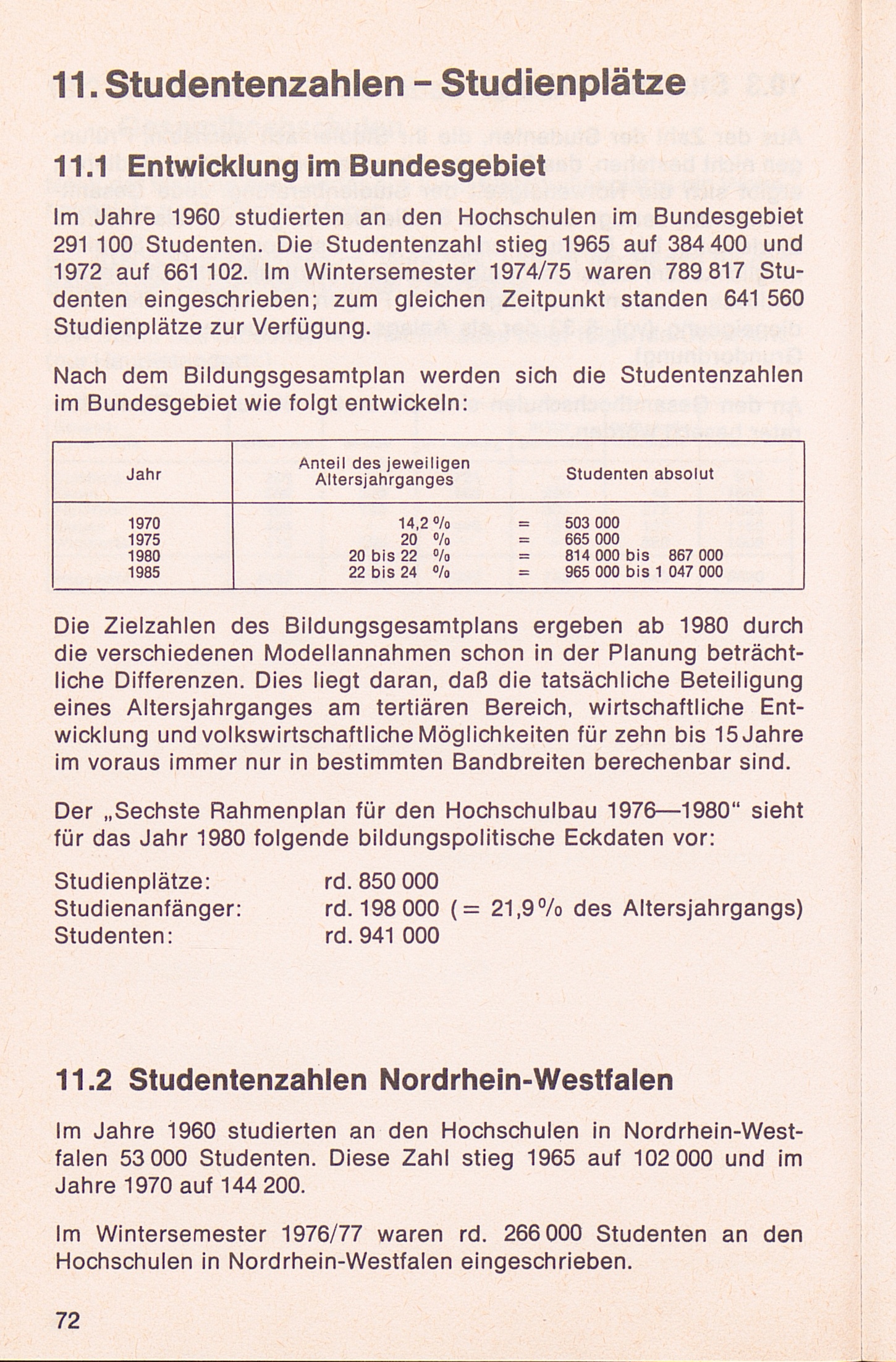11.2 Studentenzahlen Nordrhein-Westfalen