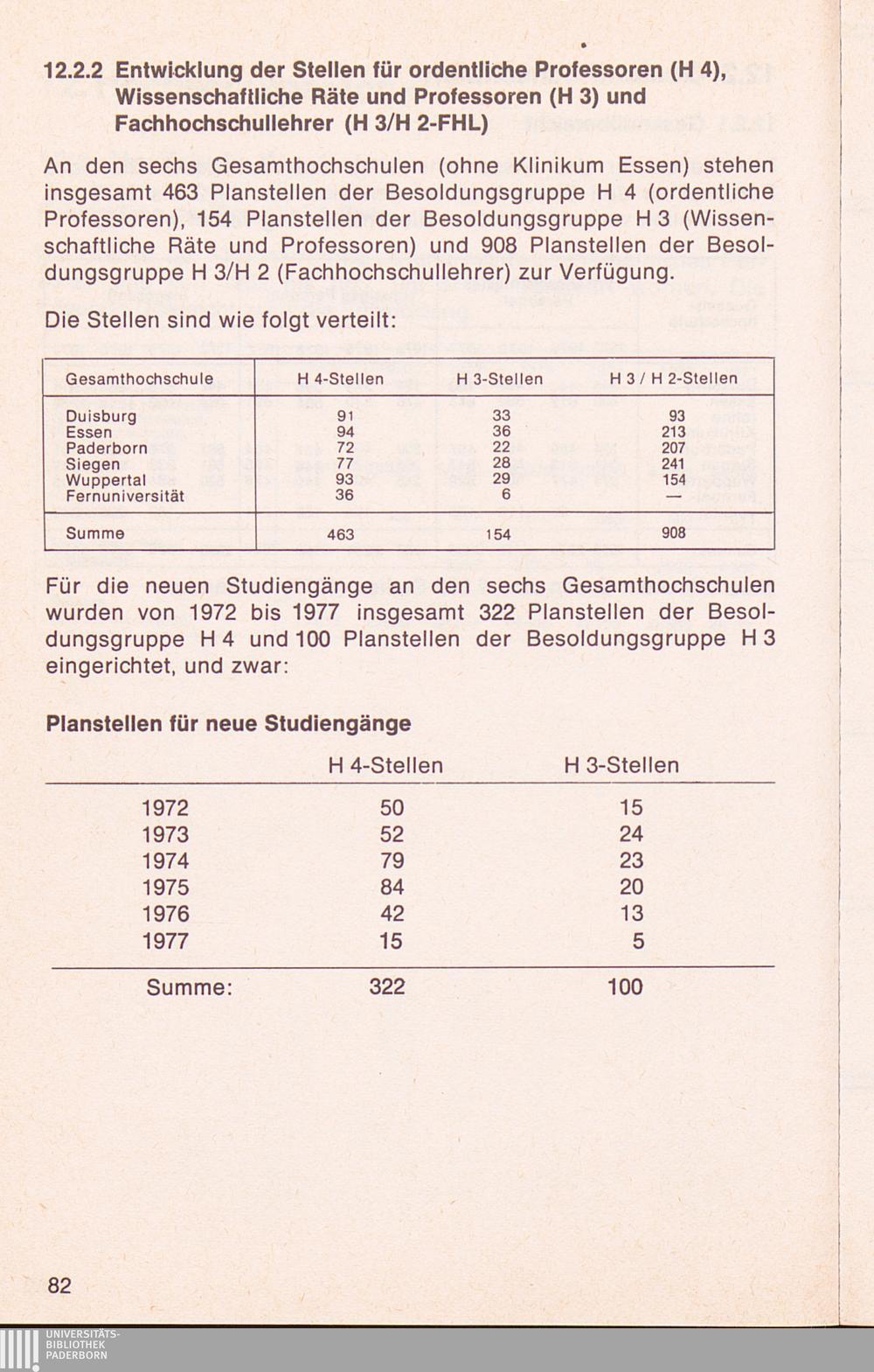 12.2.2 Entwicklung der Stellen für ordentliche Professoren, Wissenschaftliche Räte[...]