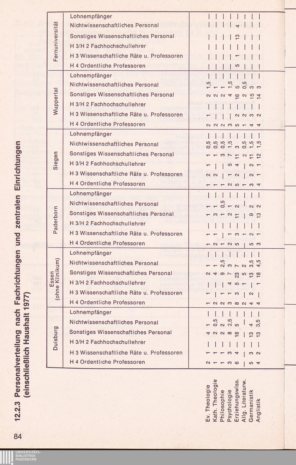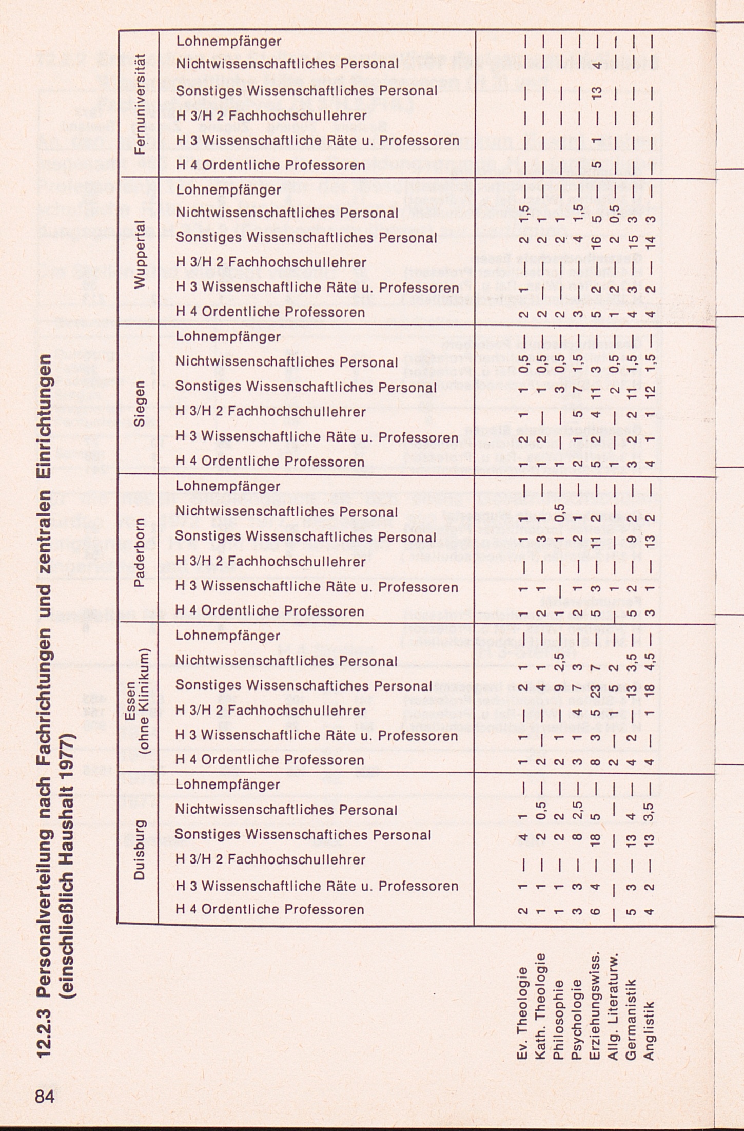 12.2.3 Personalverteilung nach Fachrichtungen und zentralen Einrichtungen