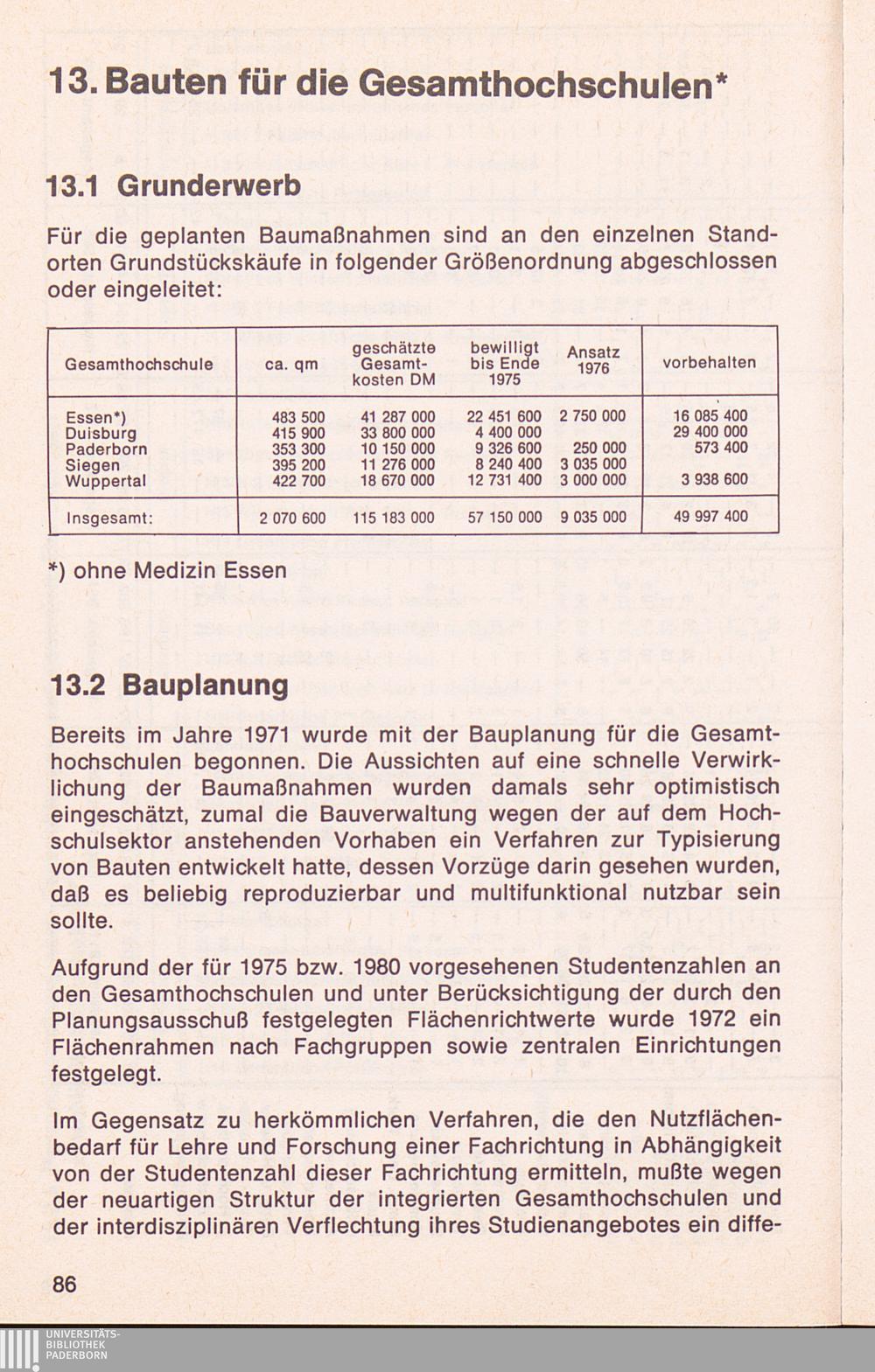 13. Bauten für die Gesamthochschulen