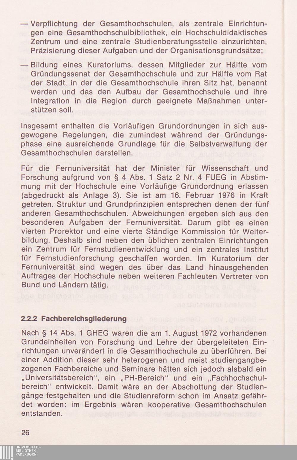 2.2.2 Fachbereichsgliederung