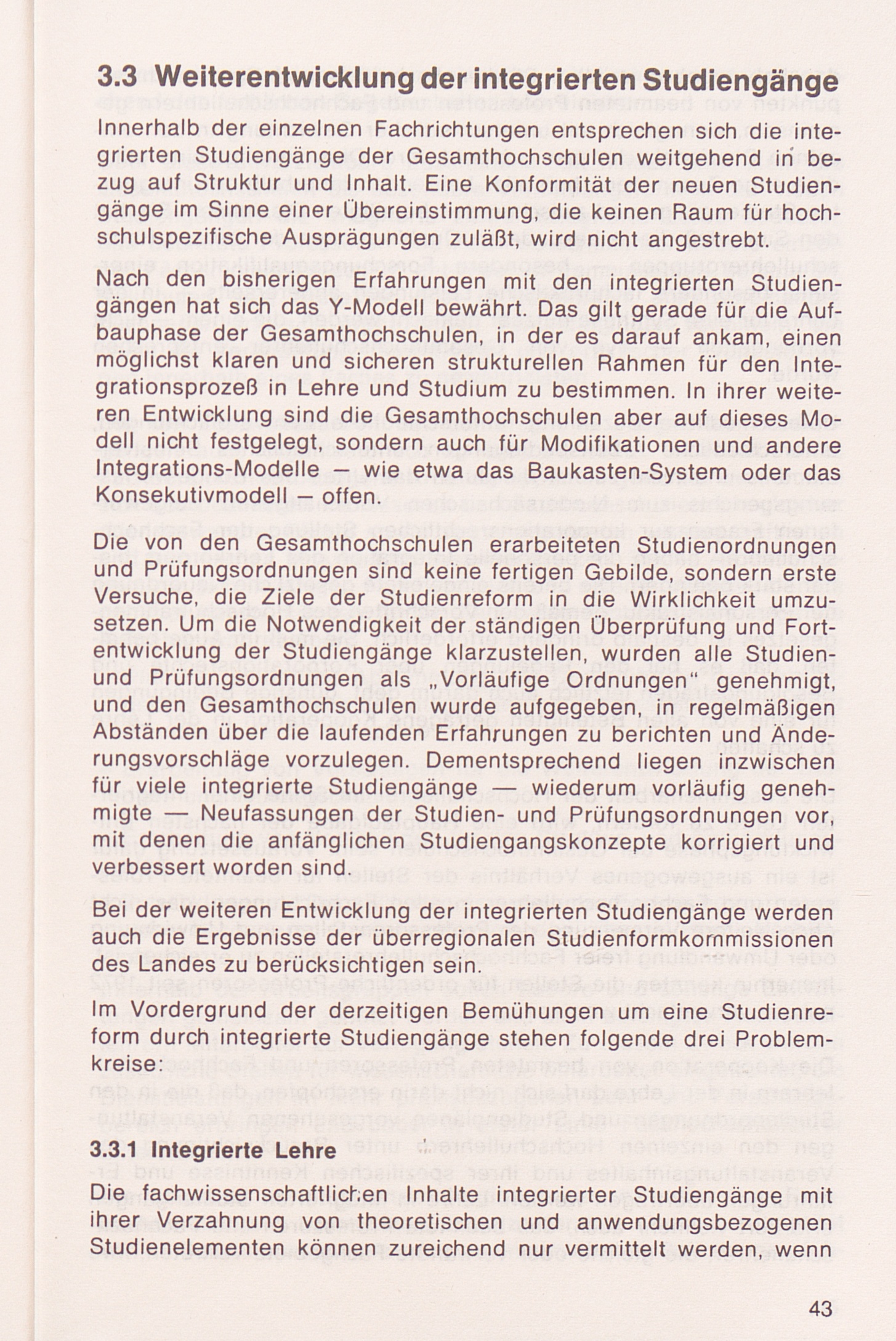 3.3 Weiterentwicklung der integrierten Studiengänge