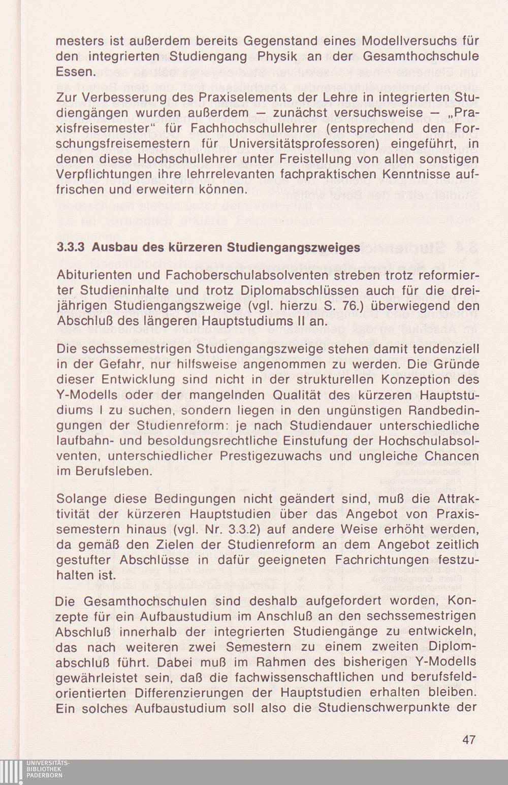 3.3.3 Ausbau des kürzeren Studiengangszweiges
