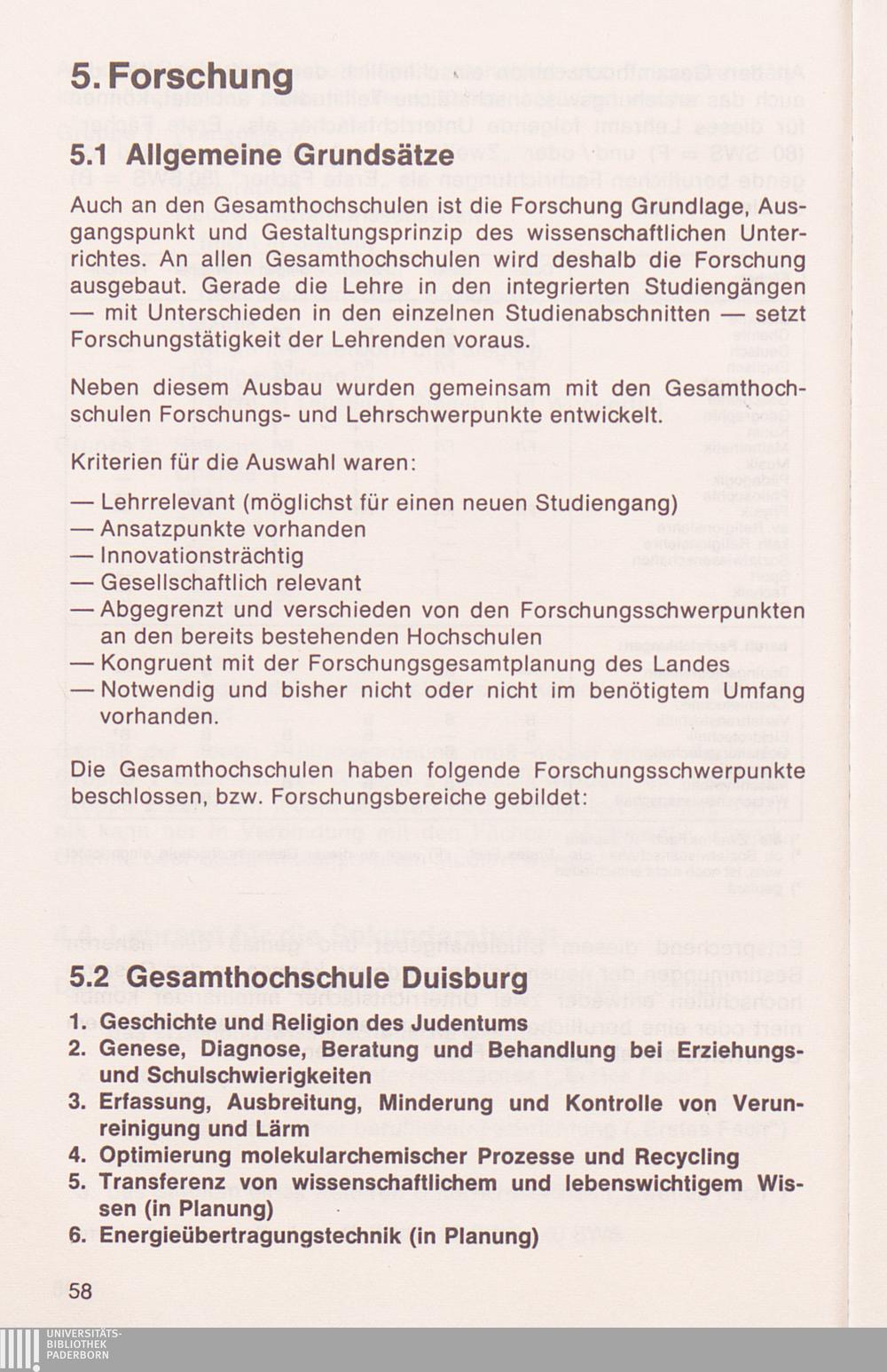 5.2 Forschungsschwerpunkte an der Gesamthochschule Duisburg