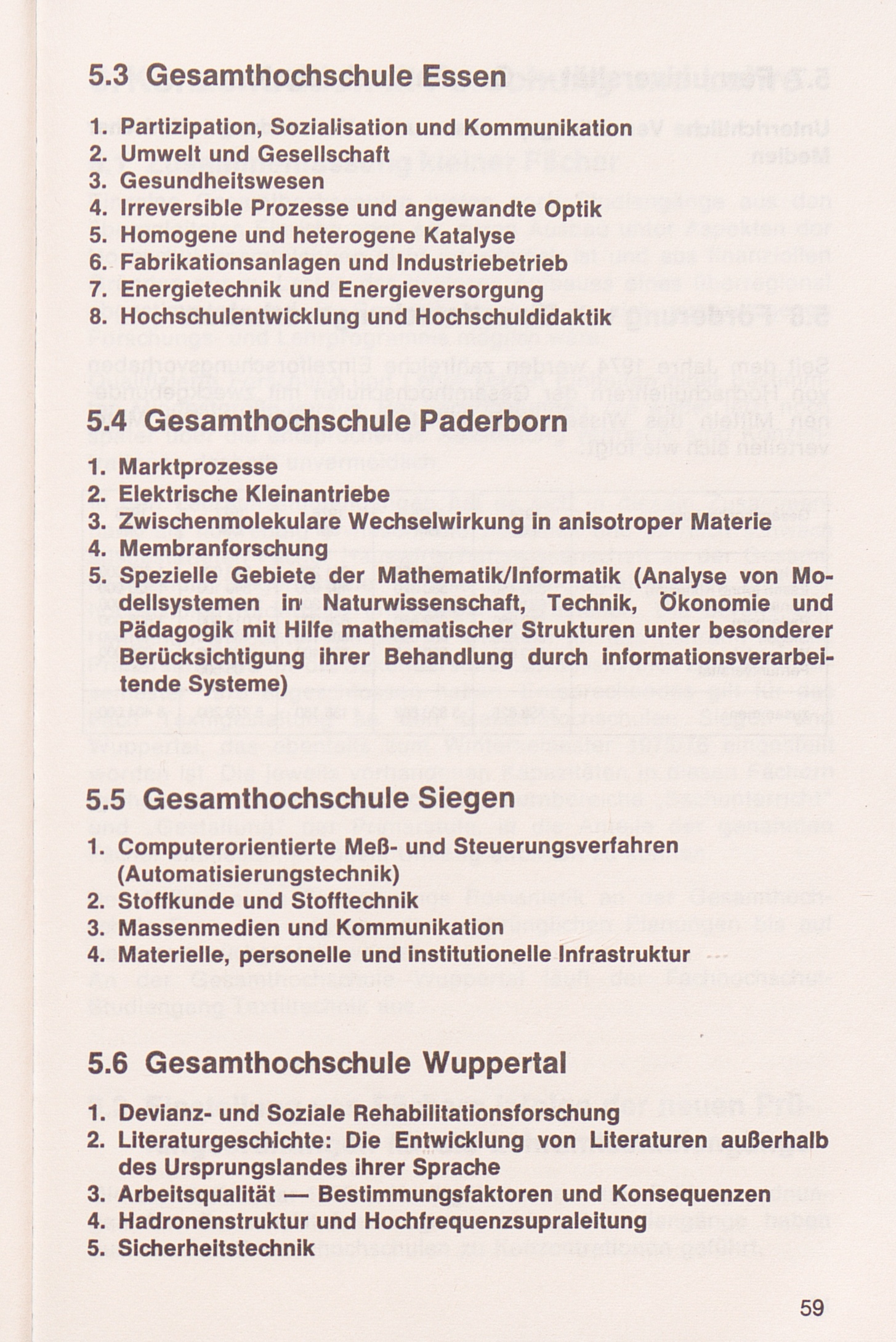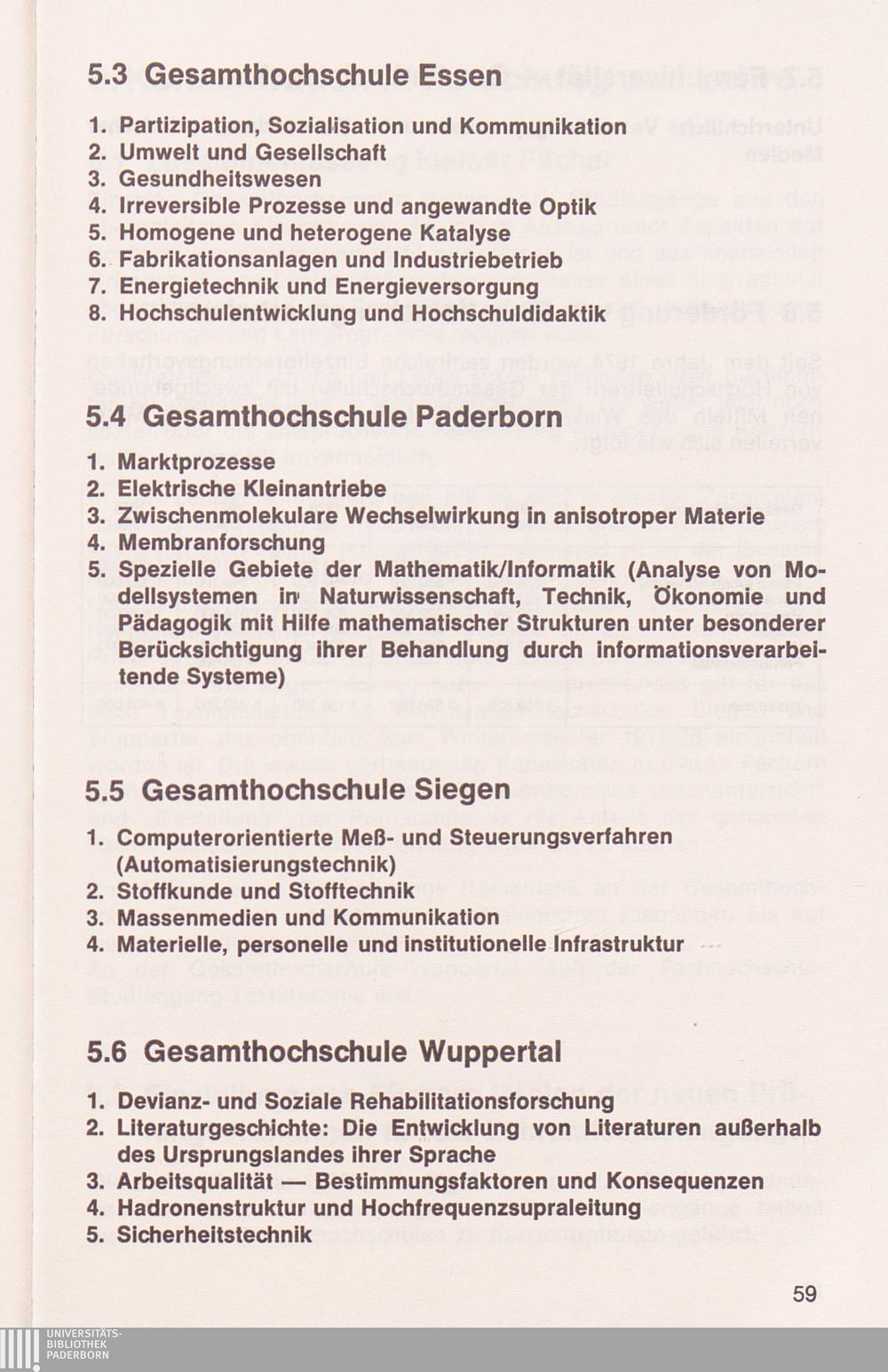 5.6 Forschungsschwerpunkte an der Gesamthochschule Wuppertal