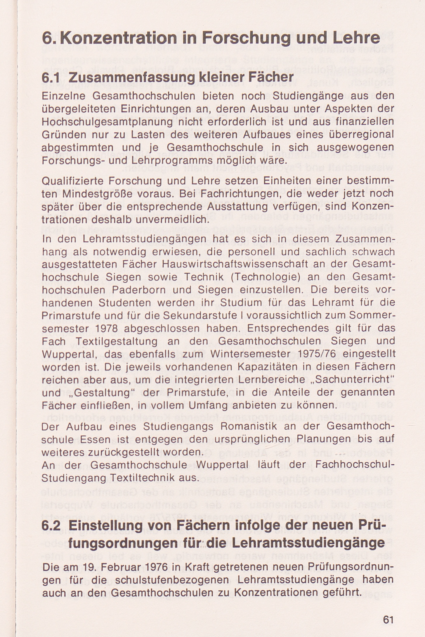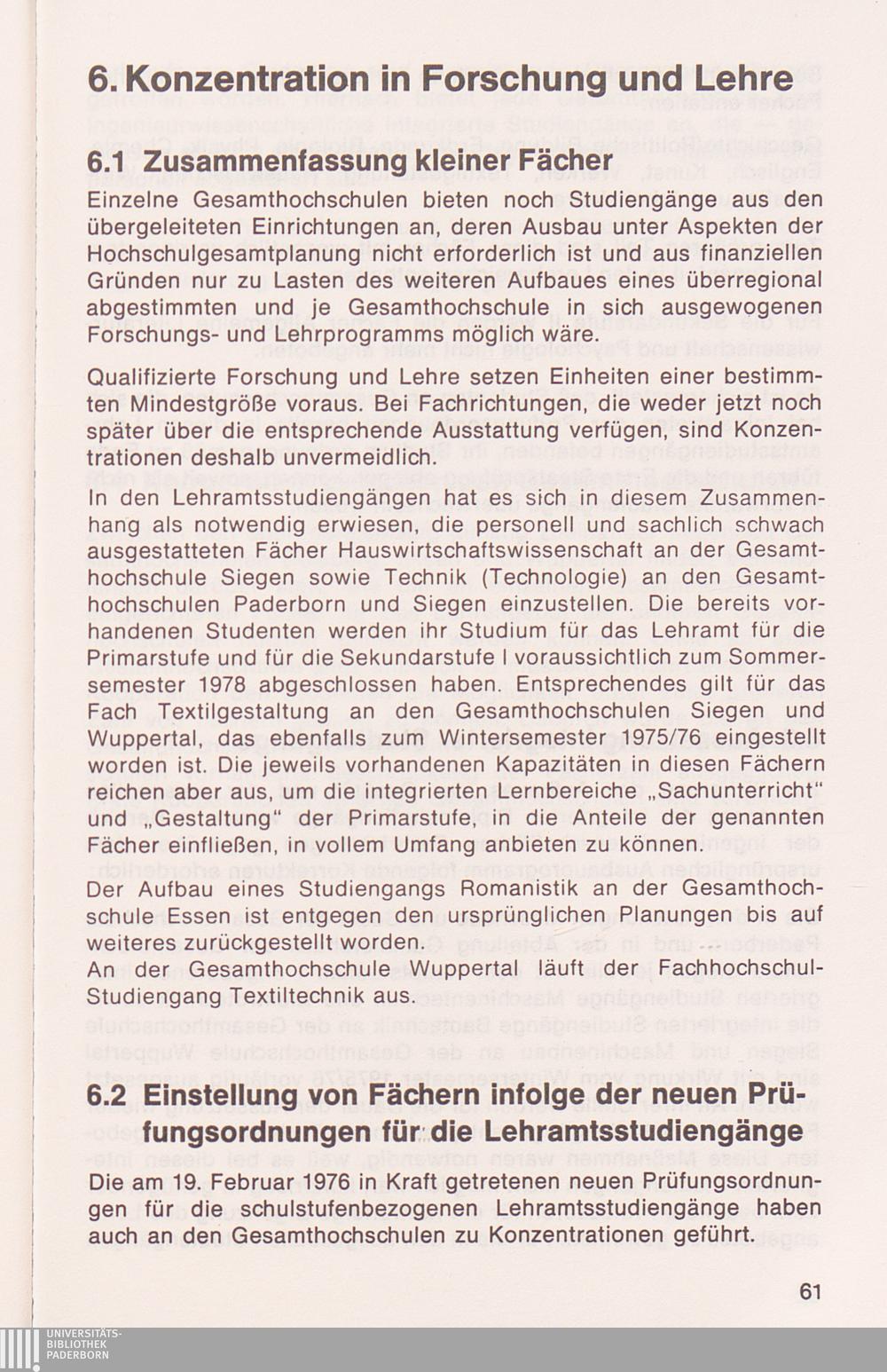 6. Konzentration in Forschung und Lehre