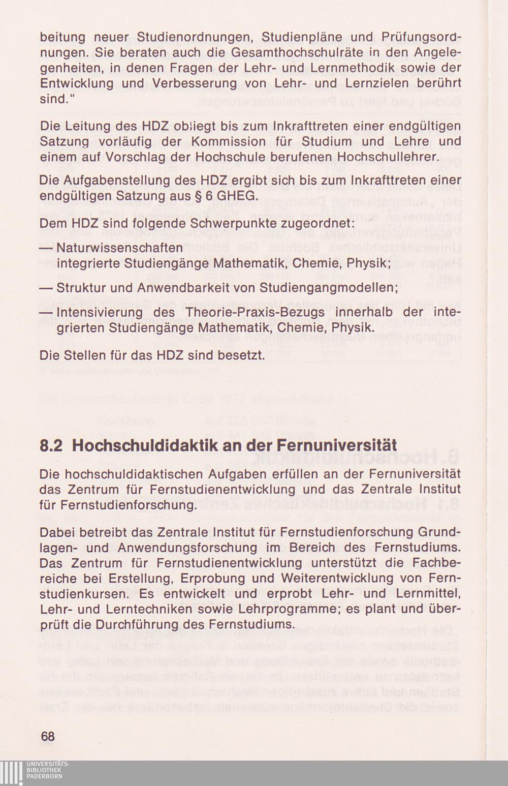 8.2 Hochschuldidaktik an der Fernuniversität