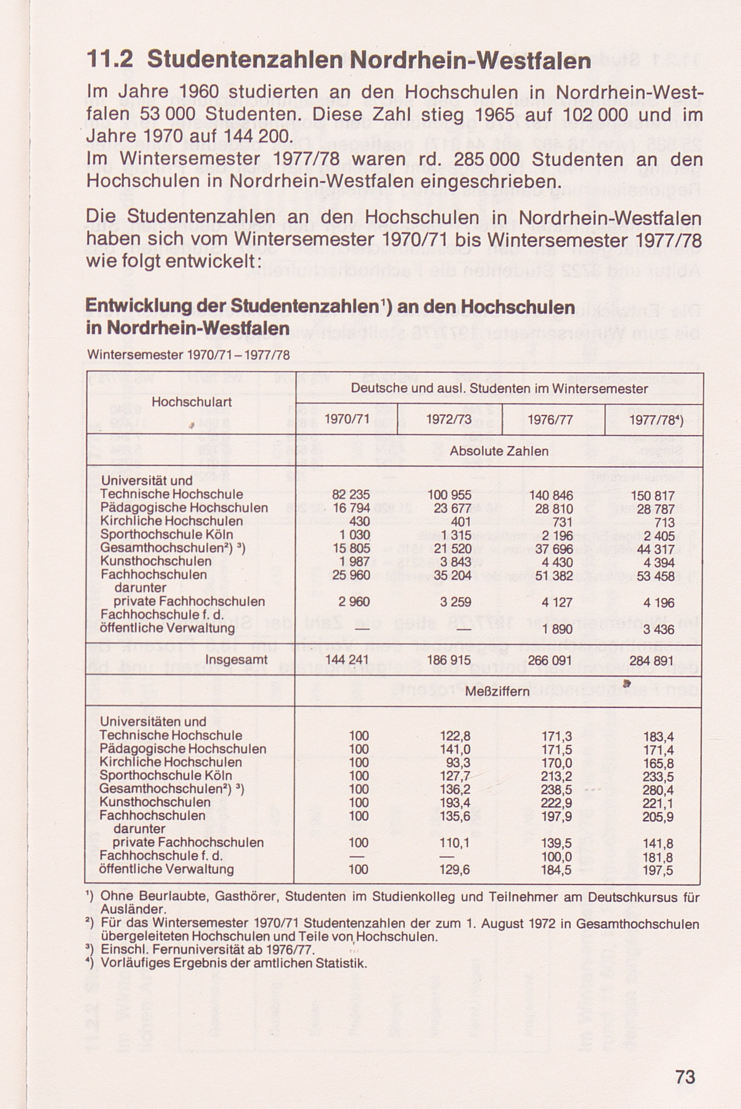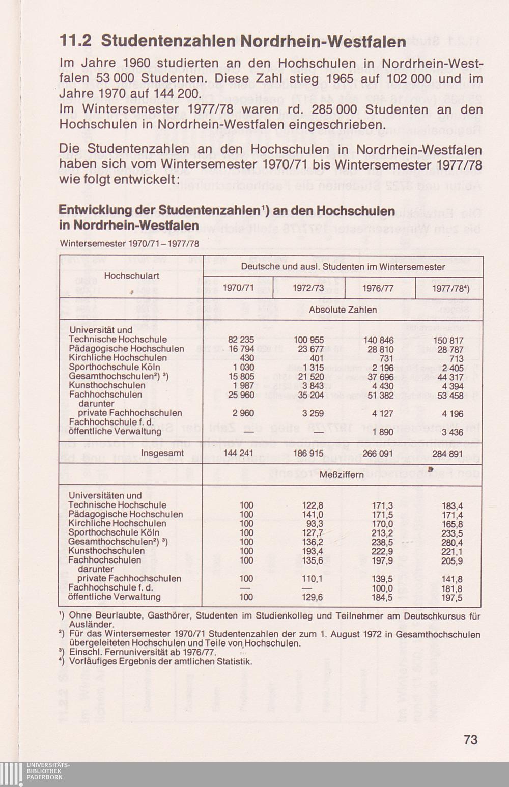 11.2 Studentenzahlen in Nordrhein-Westfalen