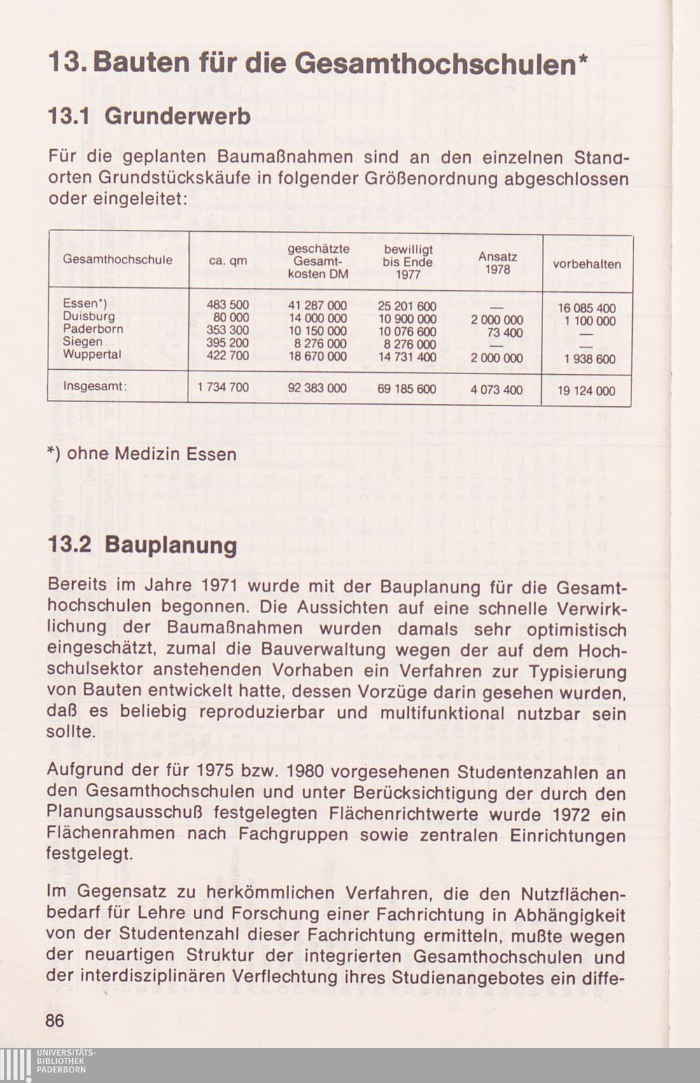 13. Bauten für die Gesamthochschulen