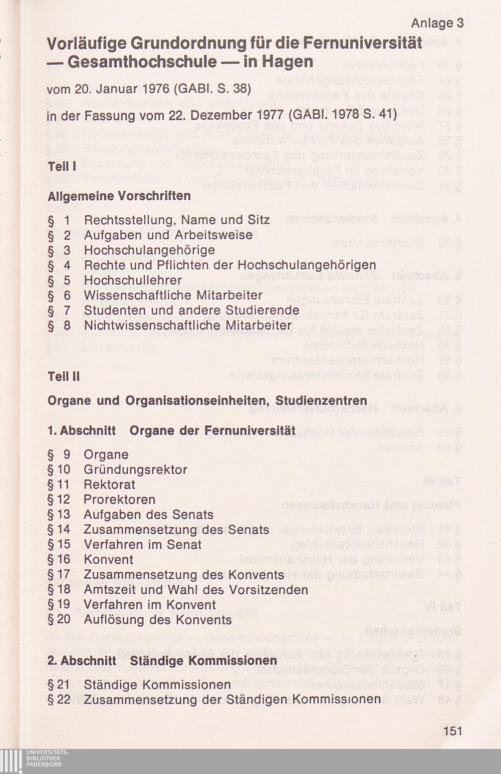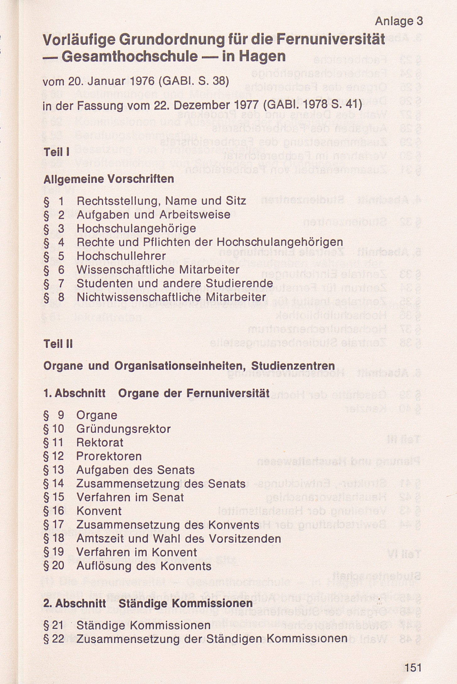 Anlage 3: Vorläufige Grundordnung für die Fernuniversität - Gesamthochschule - in[...]