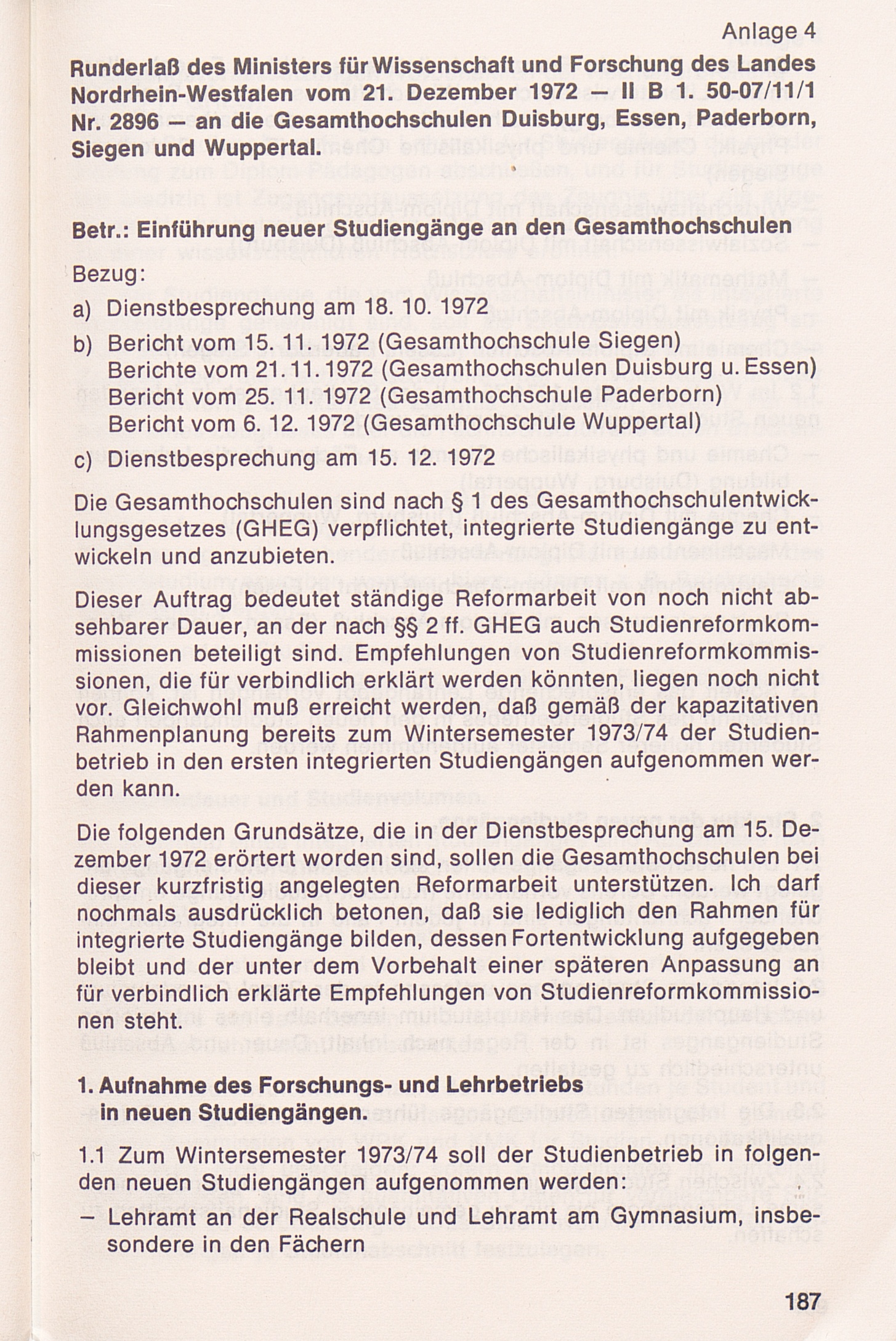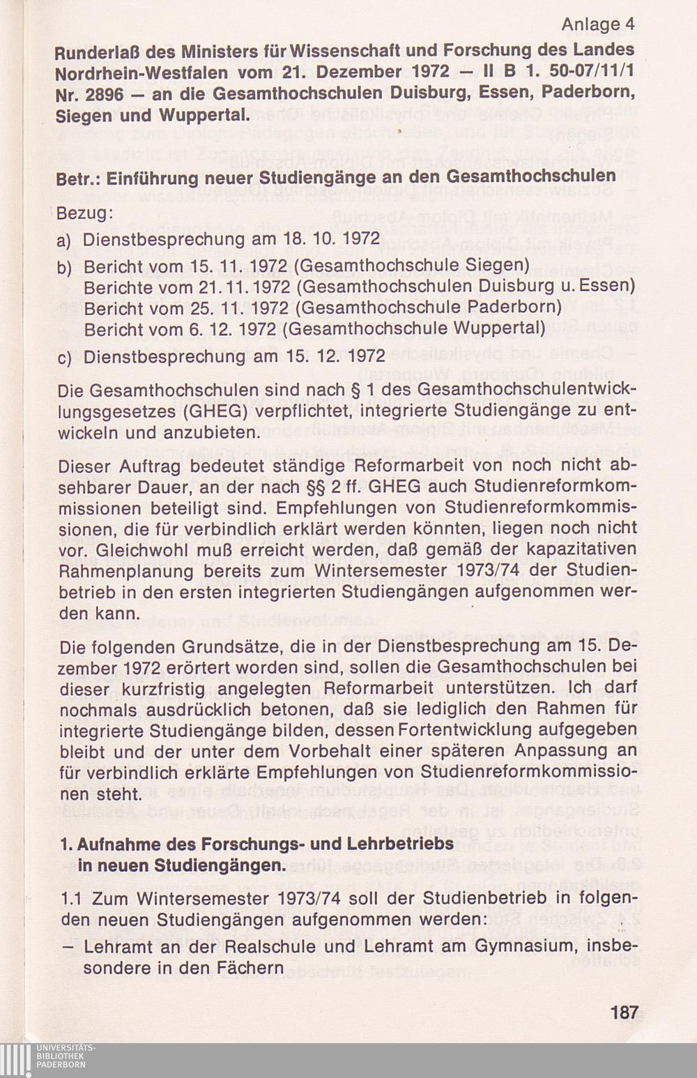 Anlage 4: Runderlaß des Ministers für Wissenschaft und Forschung über die Einführung[...]
