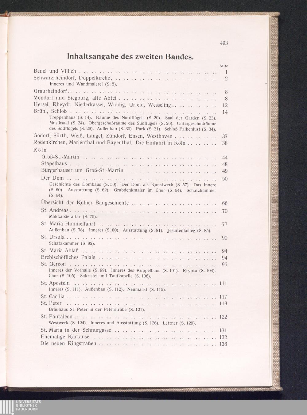 Inhaltsangabe des zweiten Bandes.