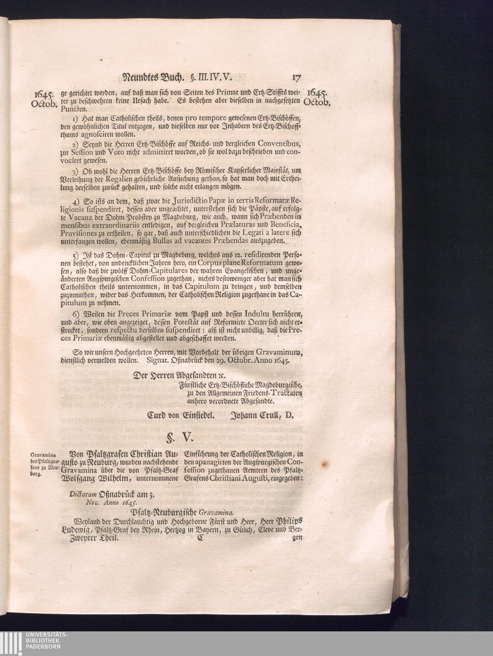 Zweyter Theil (1734) Worinnen enthalten, was vom Monath October Anno 1645. biß in den Monath Martium Ann. 1646. zwischen Jhro Römisch-Kayserlichen Majestät, dann den Beyden Cronen Franckreich und Schweden, ingleichen des Heiligen Römischen Reichs Chur-Fürsten, Fürsten und Ständen, zu Oßnabrück und Münster gehandelt worden