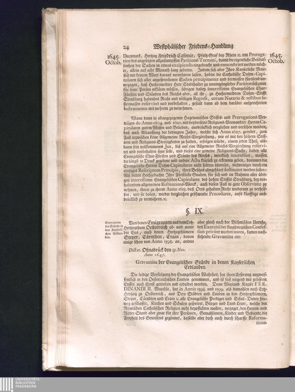 Zweyter Theil (1734) Worinnen enthalten, was vom Monath October Anno 1645. biß in den Monath Martium Ann. 1646. zwischen Jhro Römisch-Kayserlichen Majestät, dann den Beyden Cronen Franckreich und Schweden, ingleichen des Heiligen Römischen Reichs Chur-Fürsten, Fürsten und Ständen, zu Oßnabrück und Münster gehandelt worden