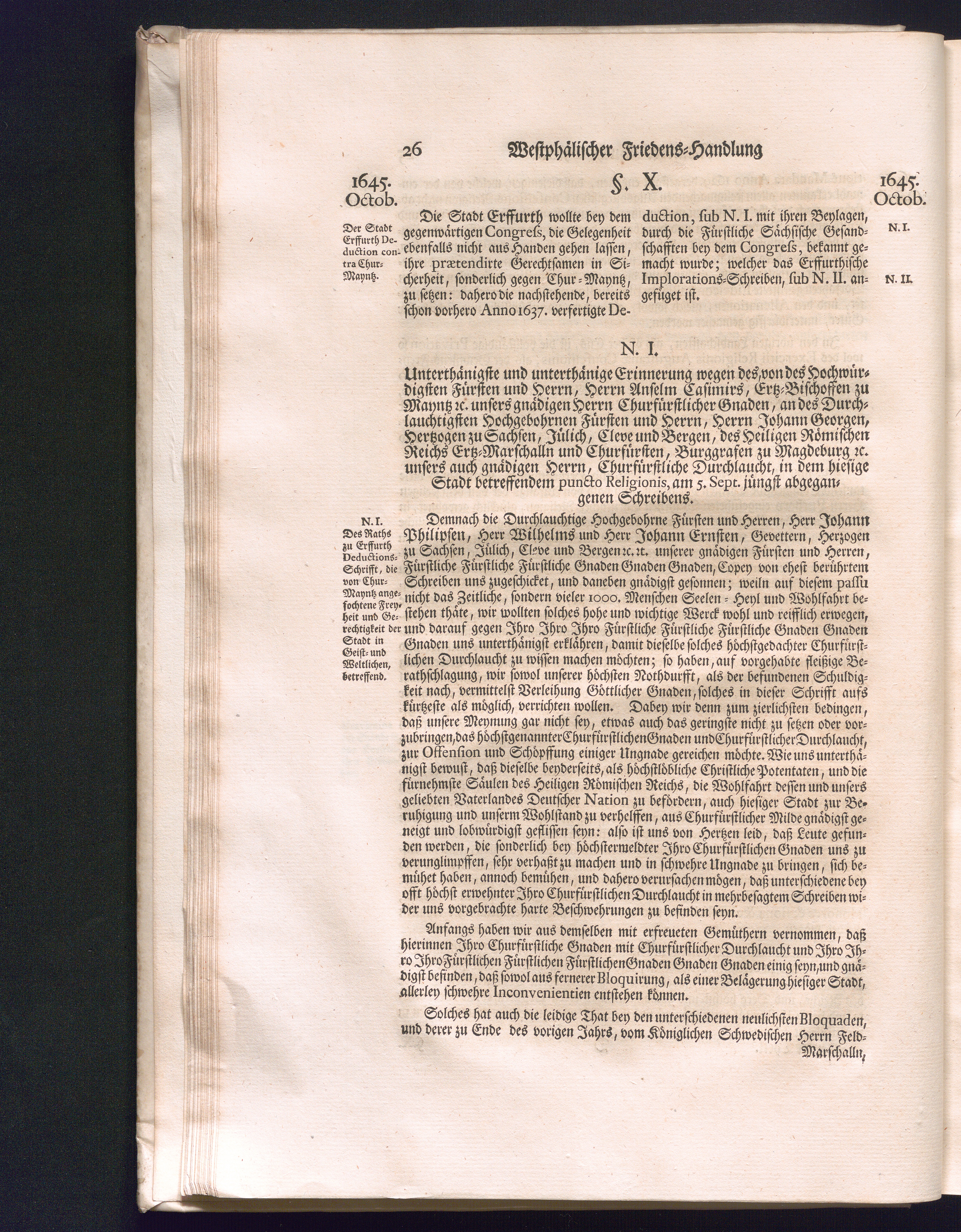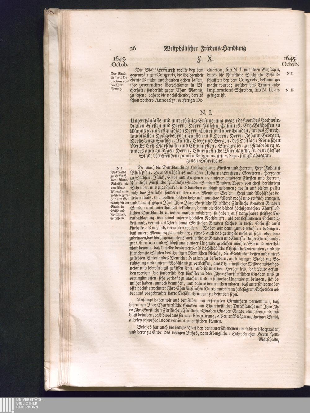 Zweyter Theil (1734) Worinnen enthalten, was vom Monath October Anno 1645. biß in den Monath Martium Ann. 1646. zwischen Jhro Römisch-Kayserlichen Majestät, dann den Beyden Cronen Franckreich und Schweden, ingleichen des Heiligen Römischen Reichs Chur-Fürsten, Fürsten und Ständen, zu Oßnabrück und Münster gehandelt worden