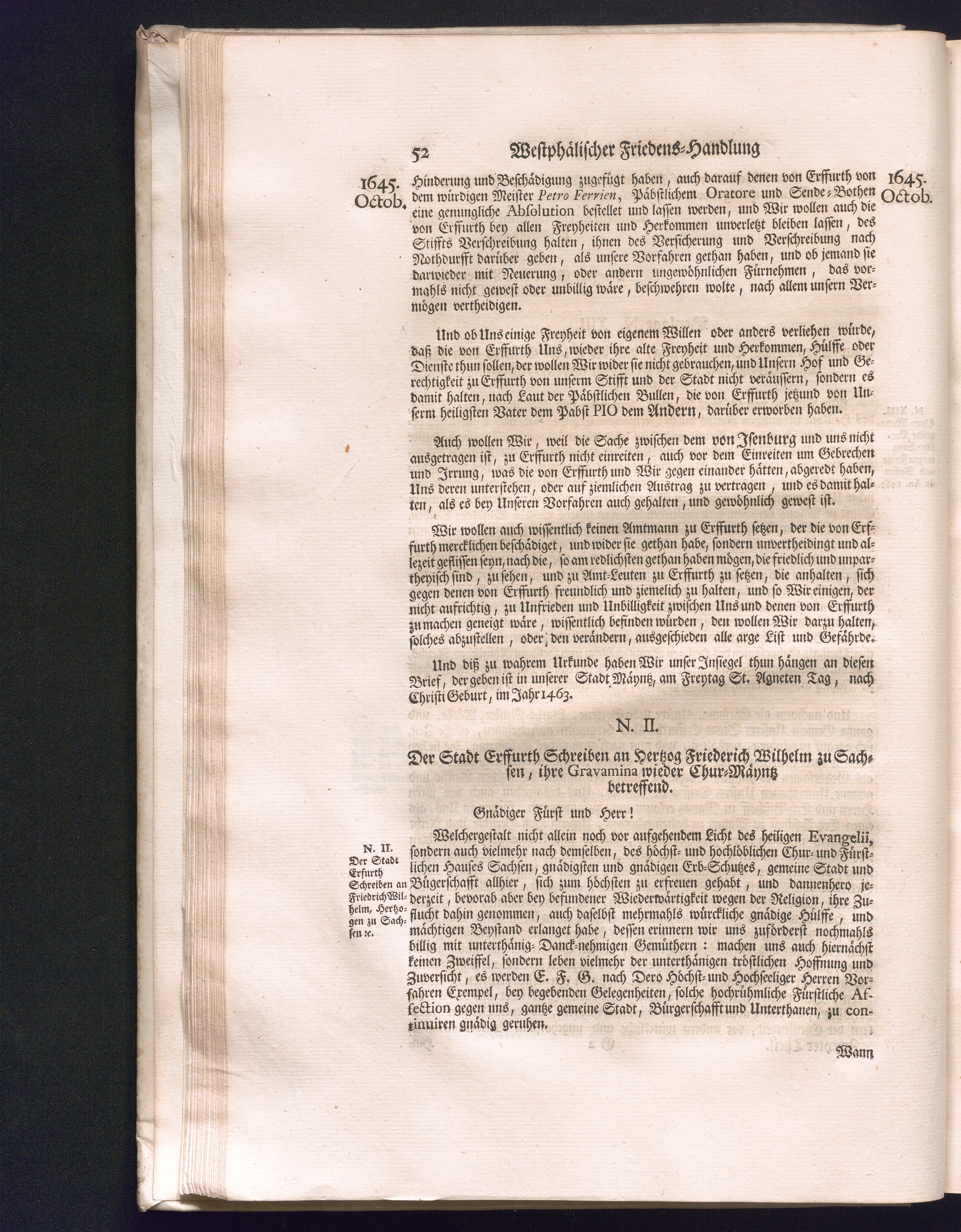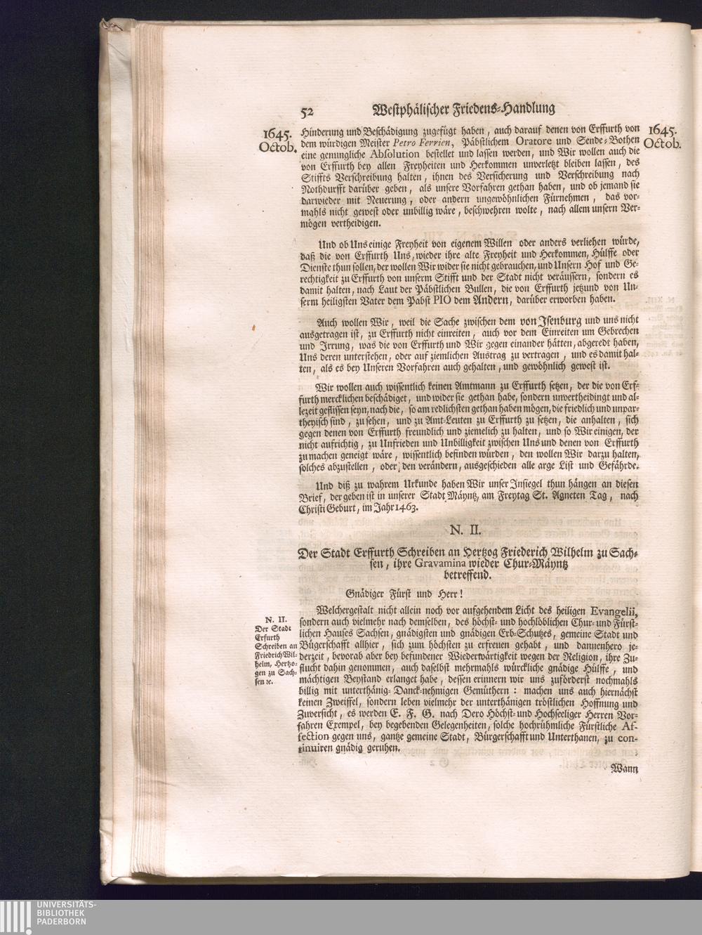 Zweyter Theil (1734) Worinnen enthalten, was vom Monath October Anno 1645. biß in den Monath Martium Ann. 1646. zwischen Jhro Römisch-Kayserlichen Majestät, dann den Beyden Cronen Franckreich und Schweden, ingleichen des Heiligen Römischen Reichs Chur-Fürsten, Fürsten und Ständen, zu Oßnabrück und Münster gehandelt worden