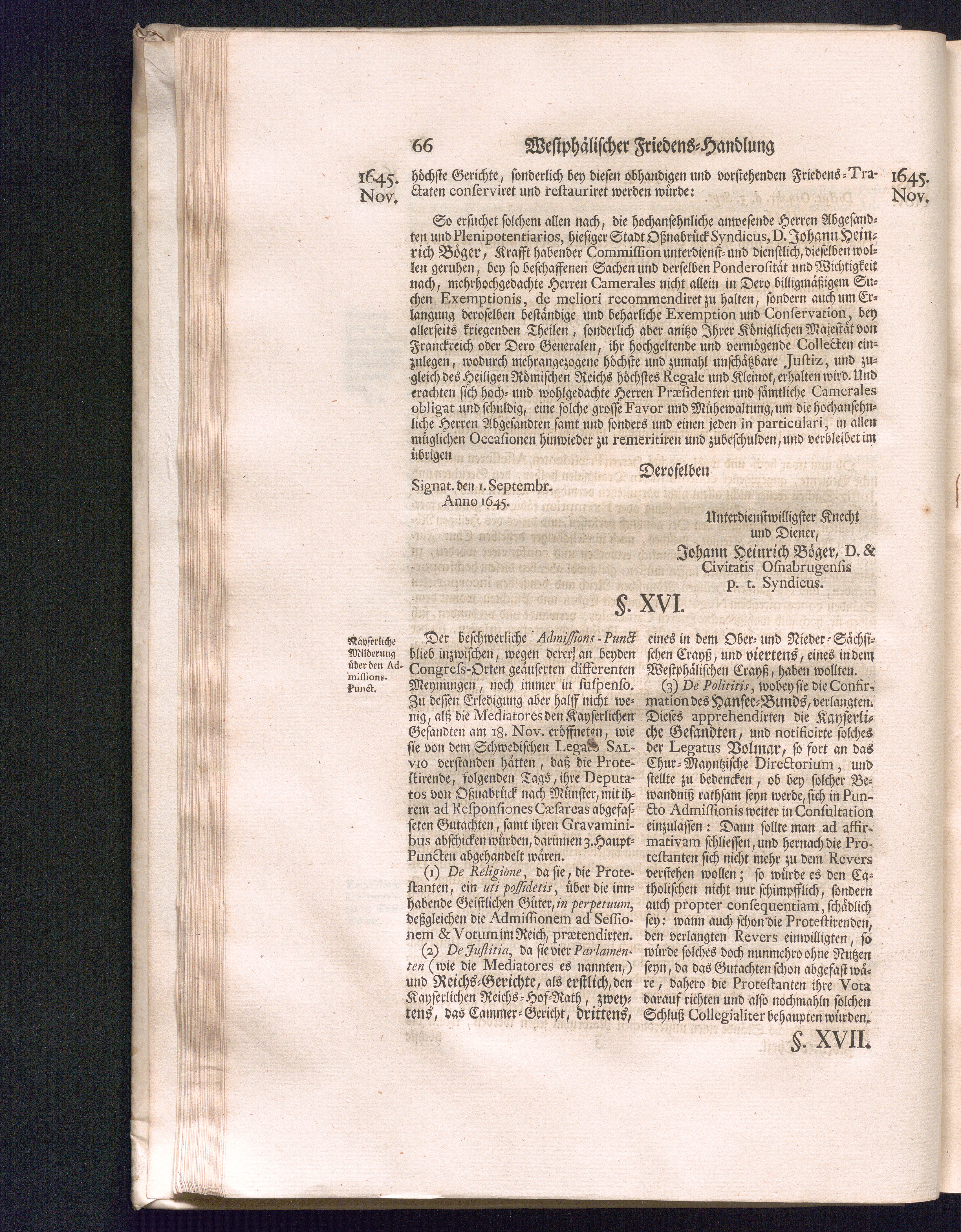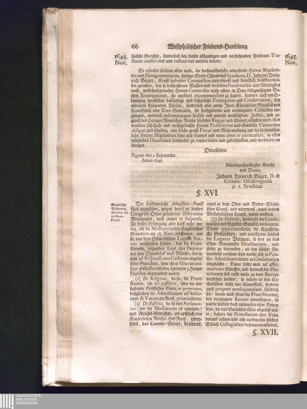 Zweyter Theil (1734) Worinnen enthalten, was vom Monath October Anno 1645. biß in den Monath Martium Ann. 1646. zwischen Jhro Römisch-Kayserlichen Majestät, dann den Beyden Cronen Franckreich und Schweden, ingleichen des Heiligen Römischen Reichs Chur-Fürsten, Fürsten und Ständen, zu Oßnabrück und Münster gehandelt worden