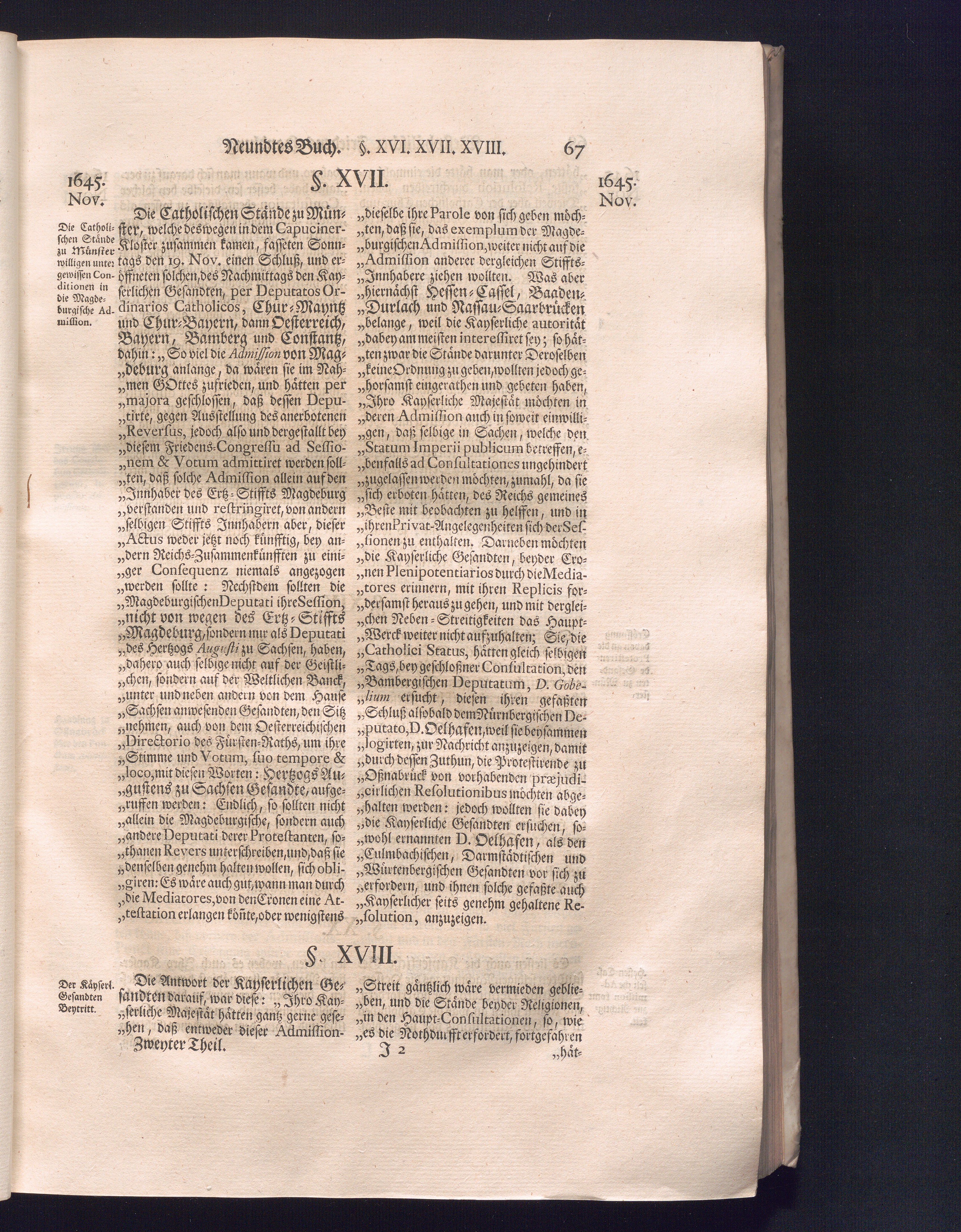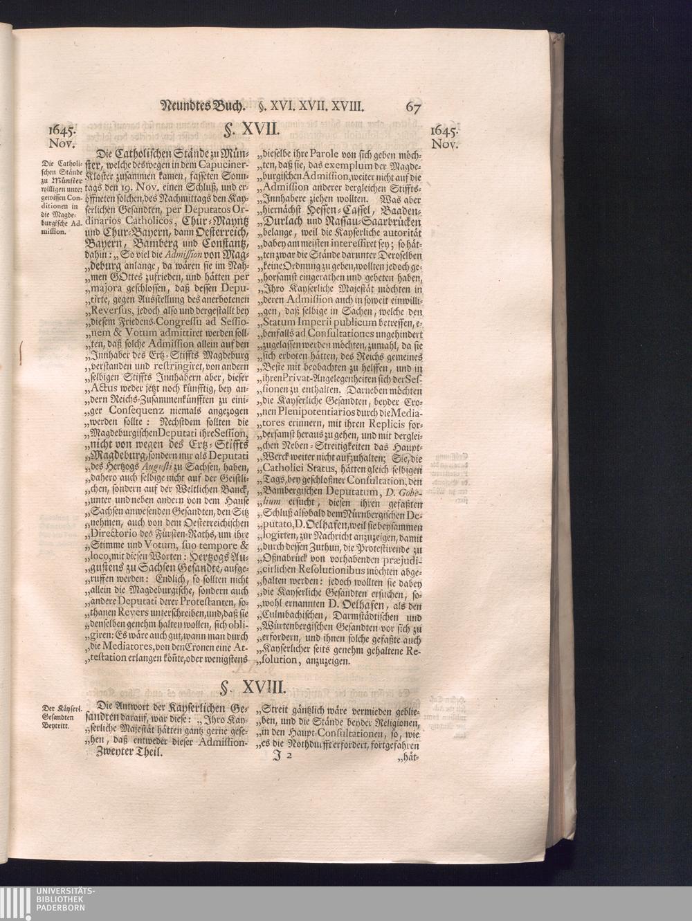 Zweyter Theil (1734) Worinnen enthalten, was vom Monath October Anno 1645. biß in den Monath Martium Ann. 1646. zwischen Jhro Römisch-Kayserlichen Majestät, dann den Beyden Cronen Franckreich und Schweden, ingleichen des Heiligen Römischen Reichs Chur-Fürsten, Fürsten und Ständen, zu Oßnabrück und Münster gehandelt worden