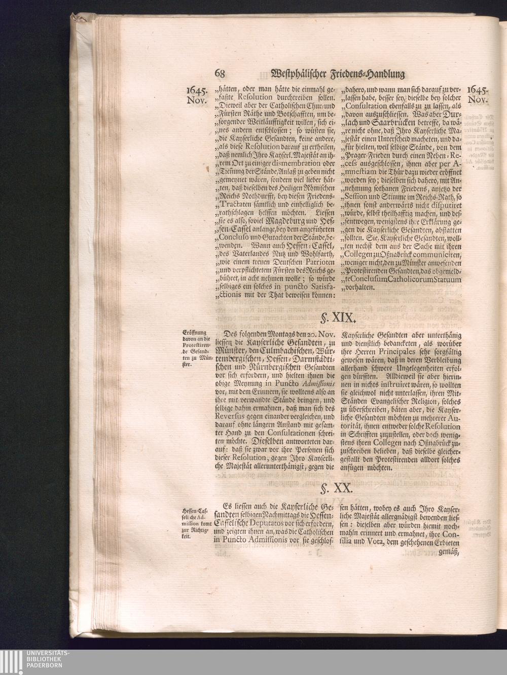 Zweyter Theil (1734) Worinnen enthalten, was vom Monath October Anno 1645. biß in den Monath Martium Ann. 1646. zwischen Jhro Römisch-Kayserlichen Majestät, dann den Beyden Cronen Franckreich und Schweden, ingleichen des Heiligen Römischen Reichs Chur-Fürsten, Fürsten und Ständen, zu Oßnabrück und Münster gehandelt worden