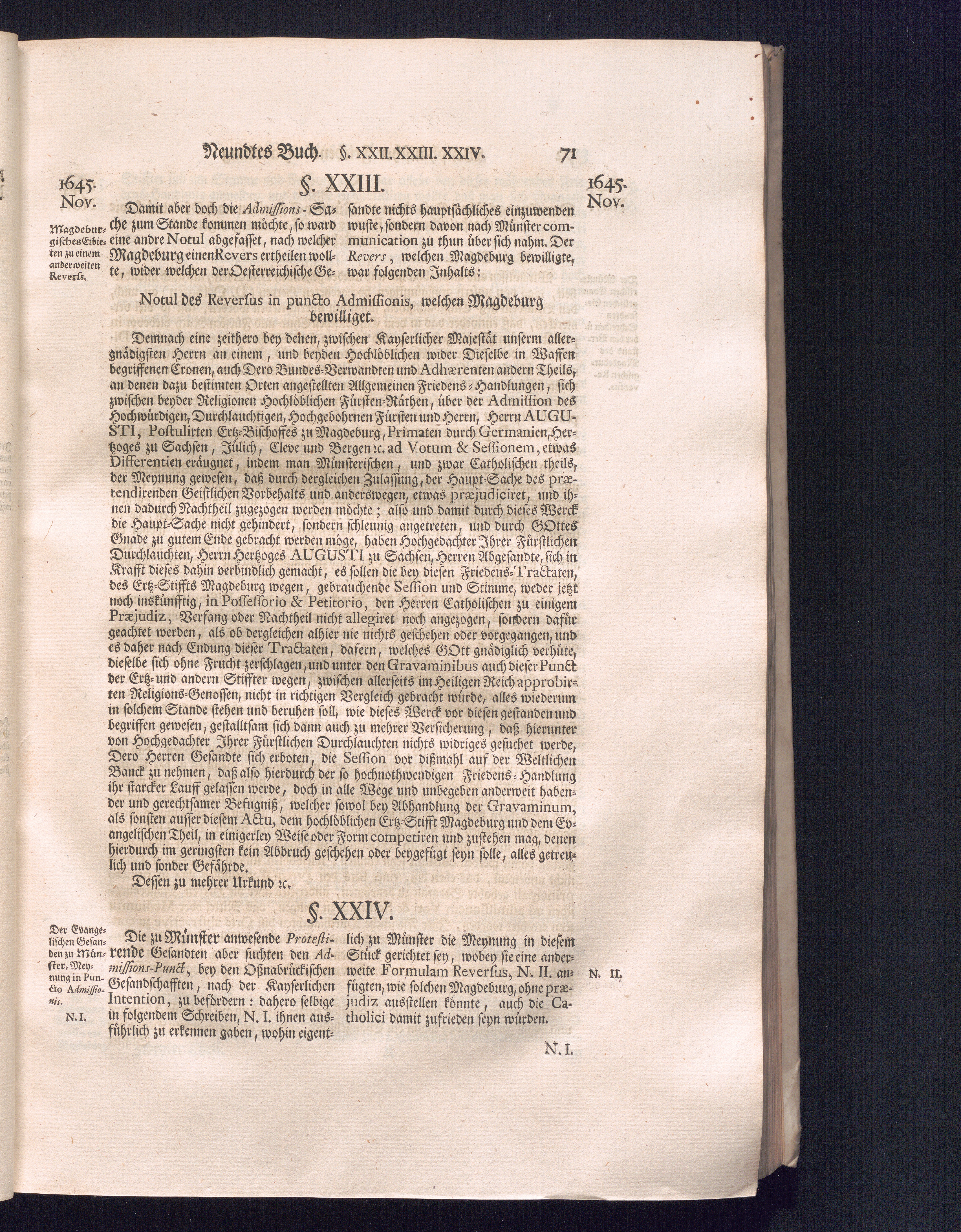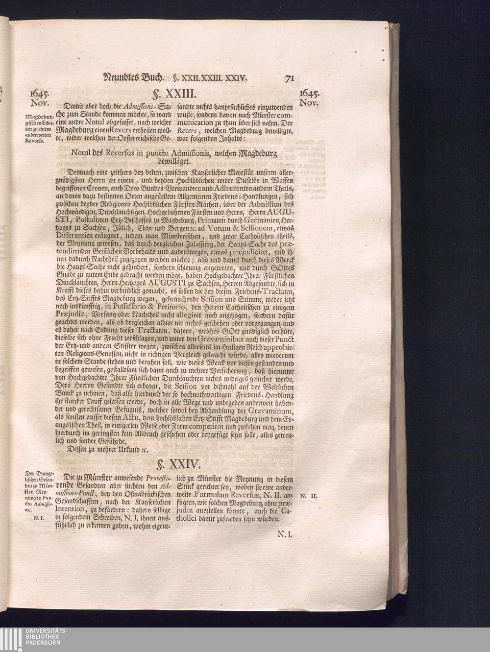 Zweyter Theil (1734) Worinnen enthalten, was vom Monath October Anno 1645. biß in den Monath Martium Ann. 1646. zwischen Jhro Römisch-Kayserlichen Majestät, dann den Beyden Cronen Franckreich und Schweden, ingleichen des Heiligen Römischen Reichs Chur-Fürsten, Fürsten und Ständen, zu Oßnabrück und Münster gehandelt worden