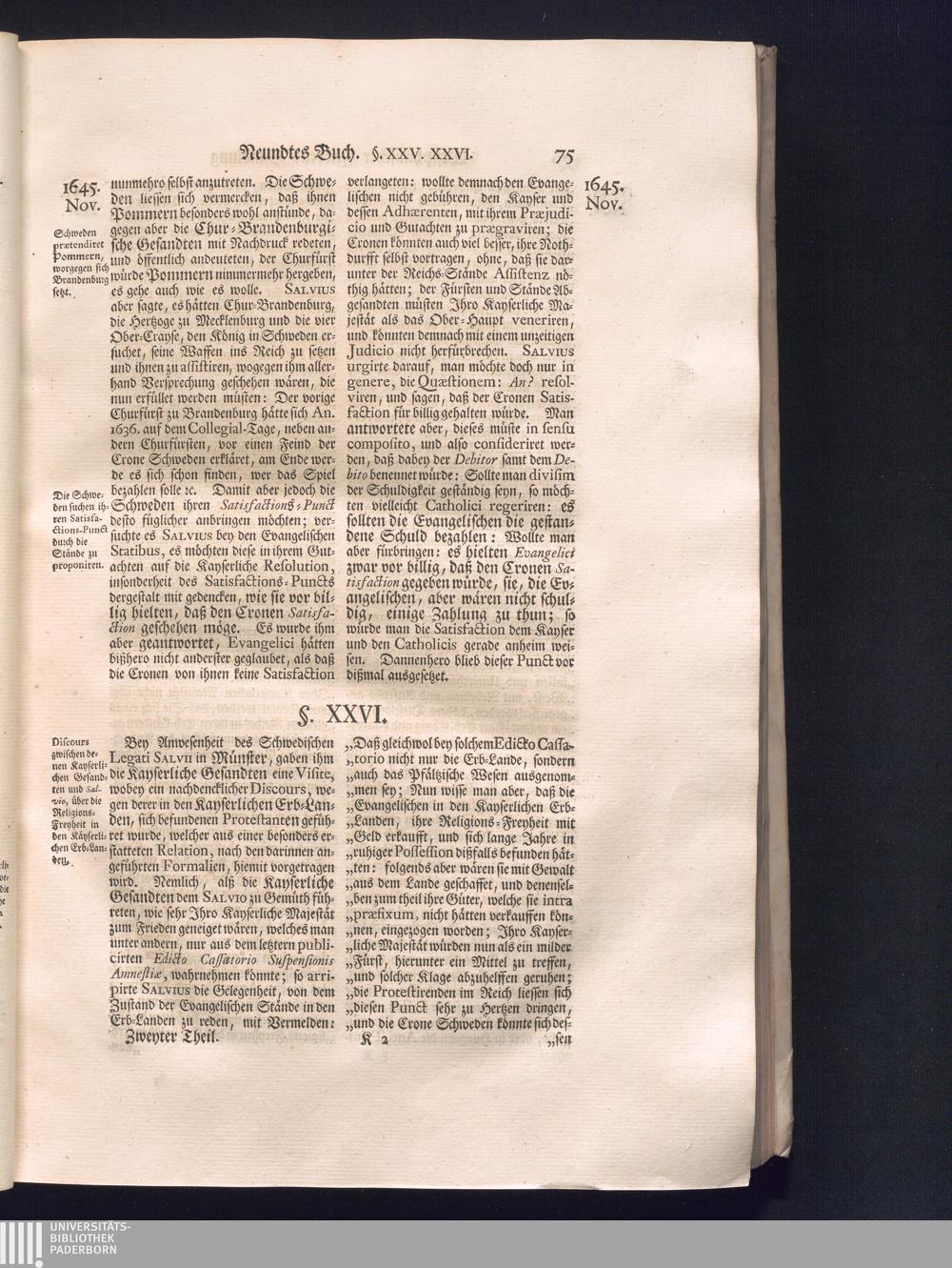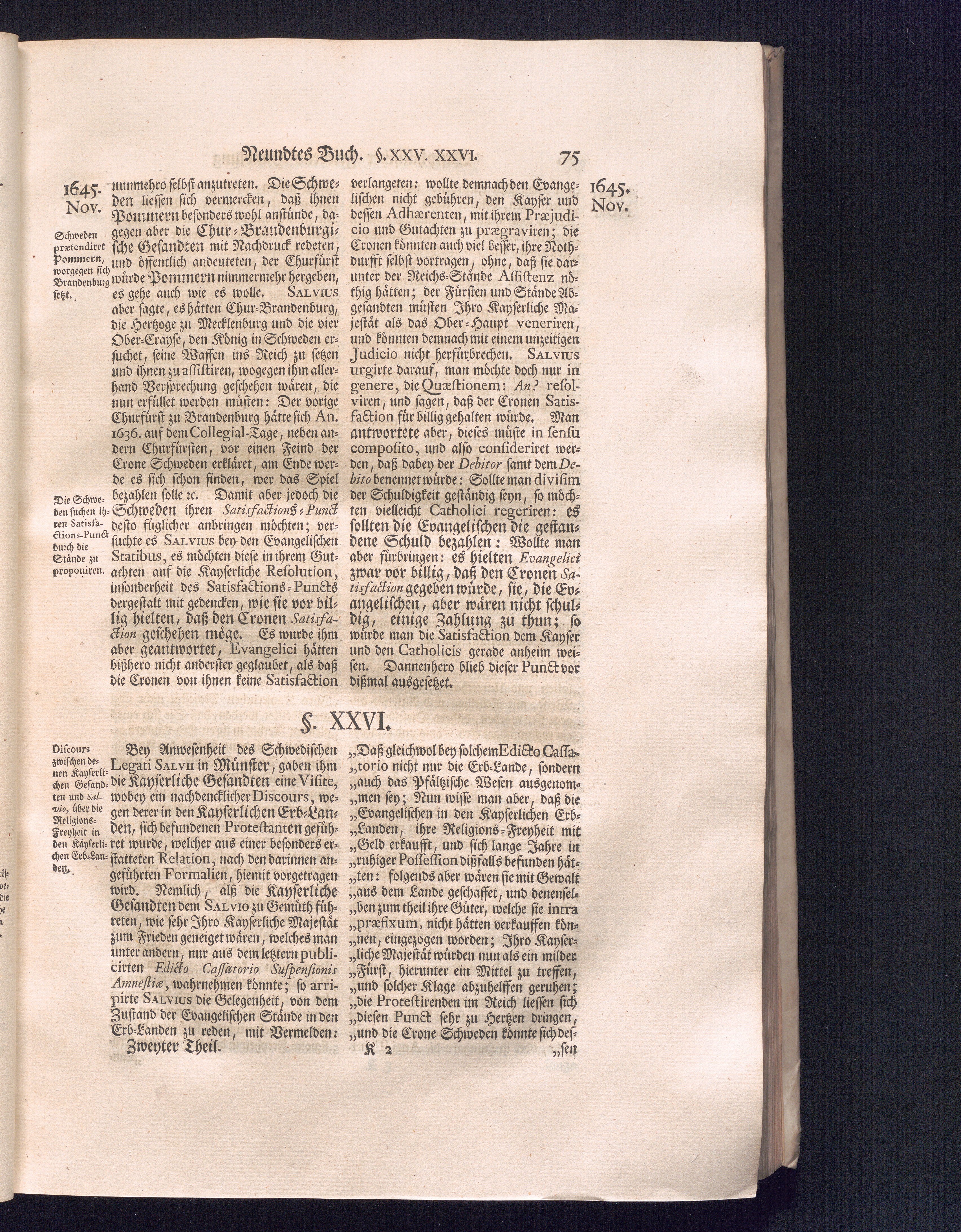 Zweyter Theil (1734) Worinnen enthalten, was vom Monath October Anno 1645. biß in den Monath Martium Ann. 1646. zwischen Jhro Römisch-Kayserlichen Majestät, dann den Beyden Cronen Franckreich und Schweden, ingleichen des Heiligen Römischen Reichs Chur-Fürsten, Fürsten und Ständen, zu Oßnabrück und Münster gehandelt worden