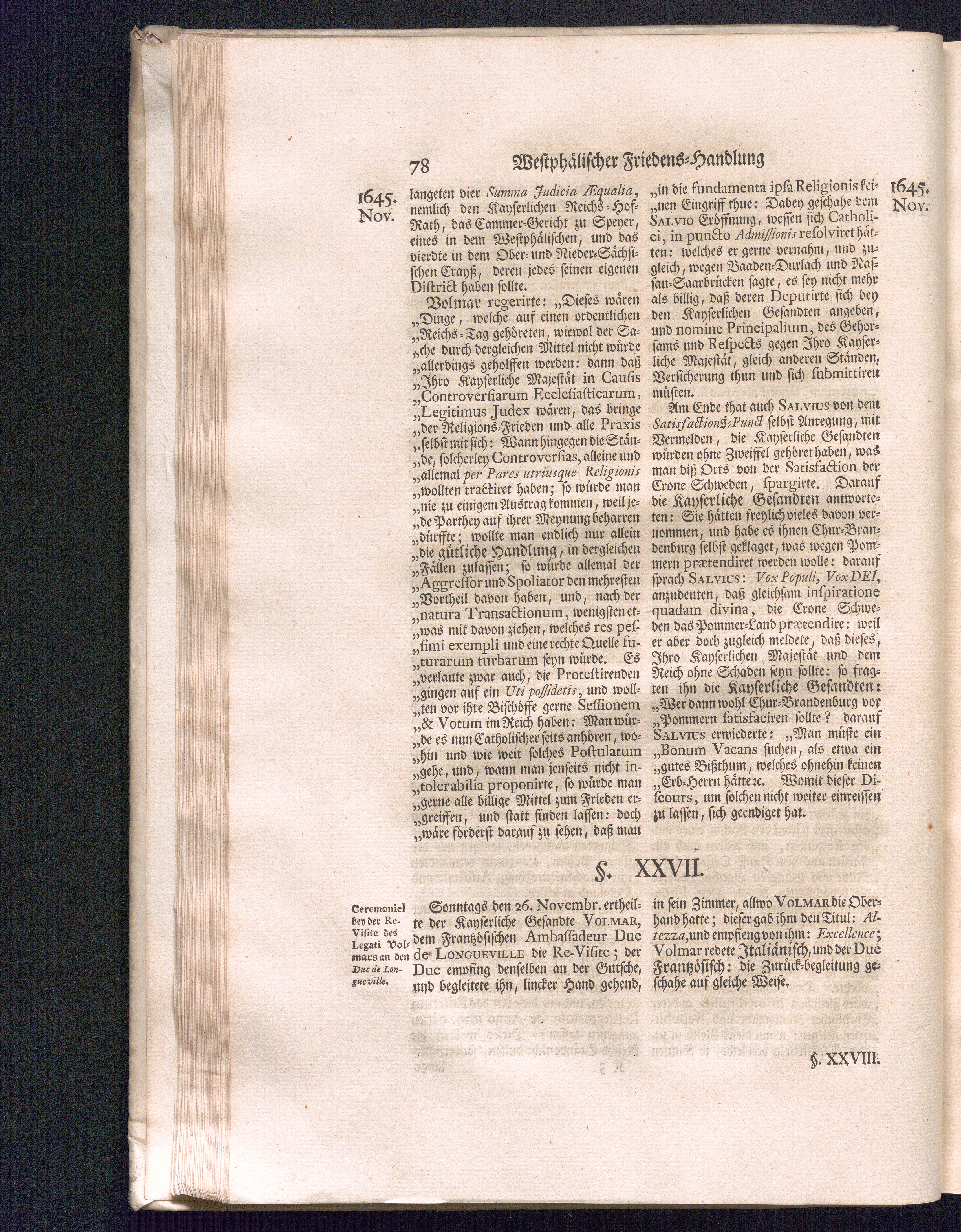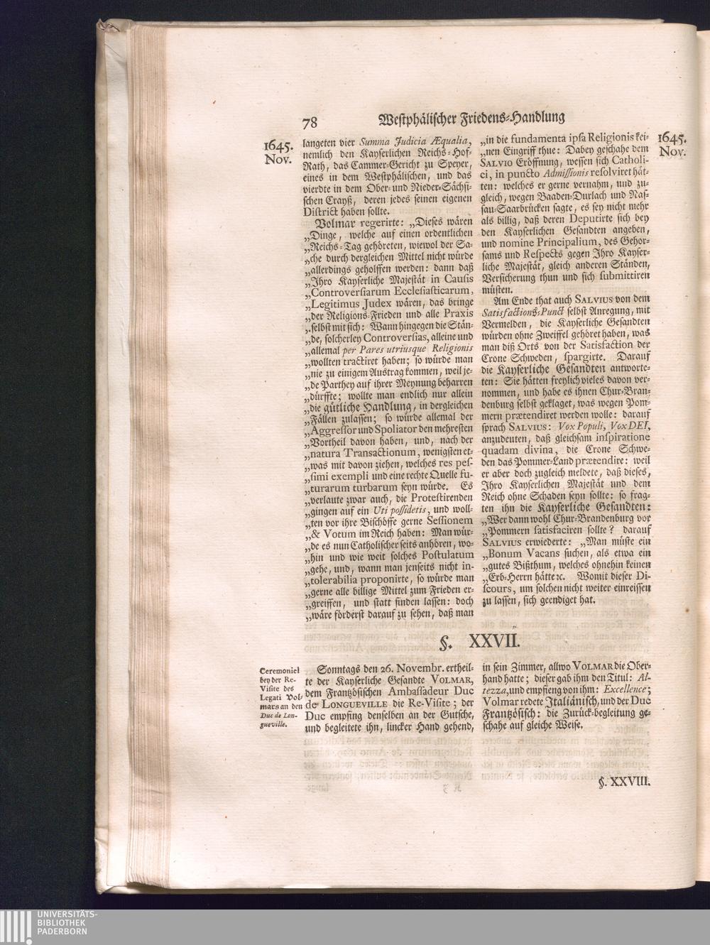 Zweyter Theil (1734) Worinnen enthalten, was vom Monath October Anno 1645. biß in den Monath Martium Ann. 1646. zwischen Jhro Römisch-Kayserlichen Majestät, dann den Beyden Cronen Franckreich und Schweden, ingleichen des Heiligen Römischen Reichs Chur-Fürsten, Fürsten und Ständen, zu Oßnabrück und Münster gehandelt worden