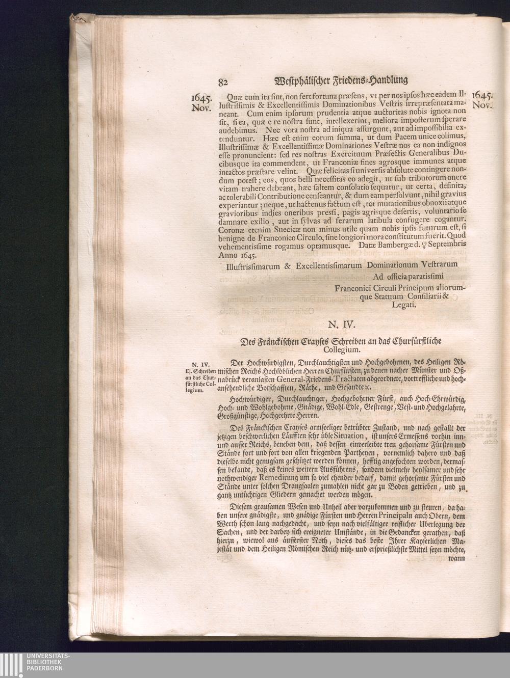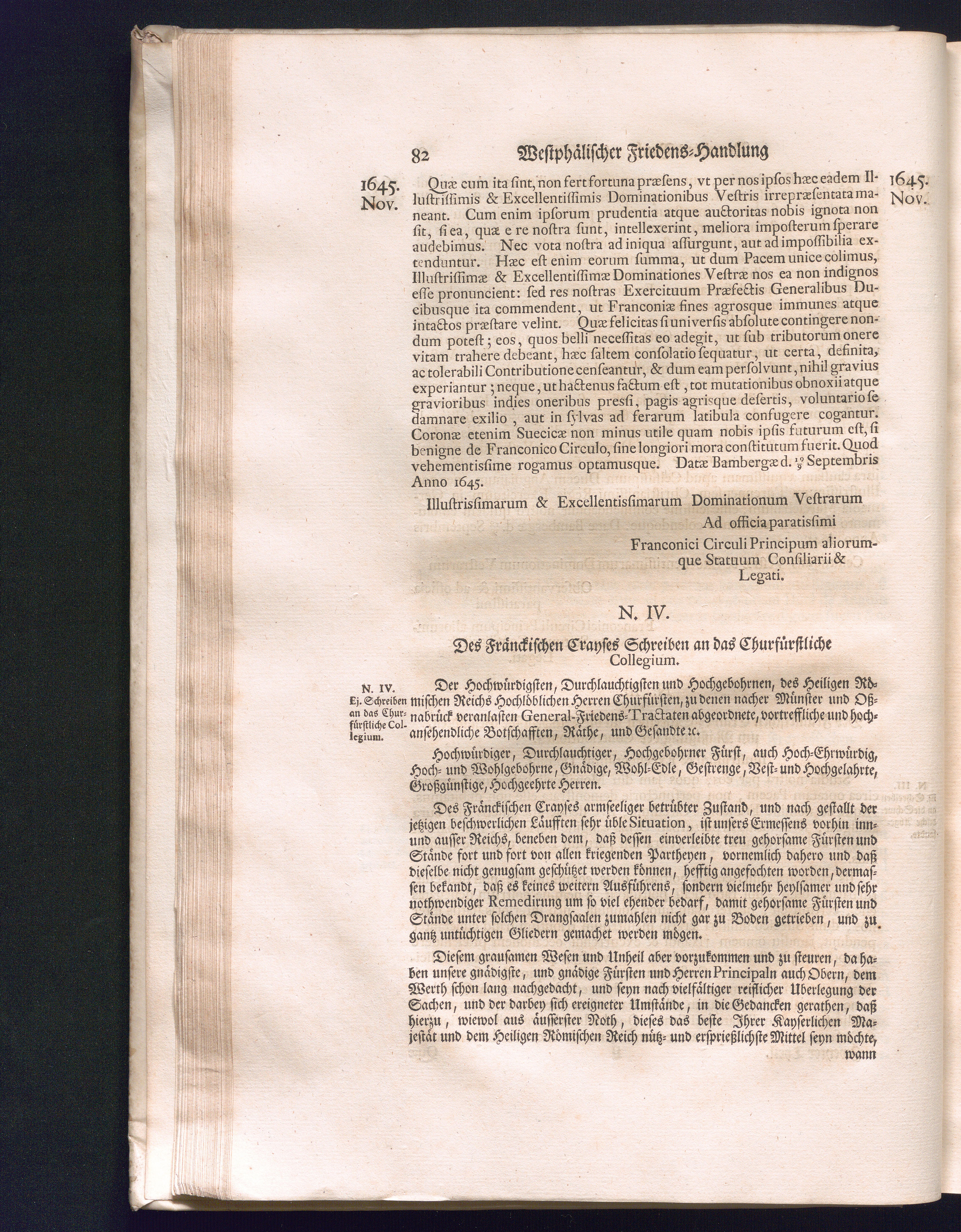 Zweyter Theil (1734) Worinnen enthalten, was vom Monath October Anno 1645. biß in den Monath Martium Ann. 1646. zwischen Jhro Römisch-Kayserlichen Majestät, dann den Beyden Cronen Franckreich und Schweden, ingleichen des Heiligen Römischen Reichs Chur-Fürsten, Fürsten und Ständen, zu Oßnabrück und Münster gehandelt worden