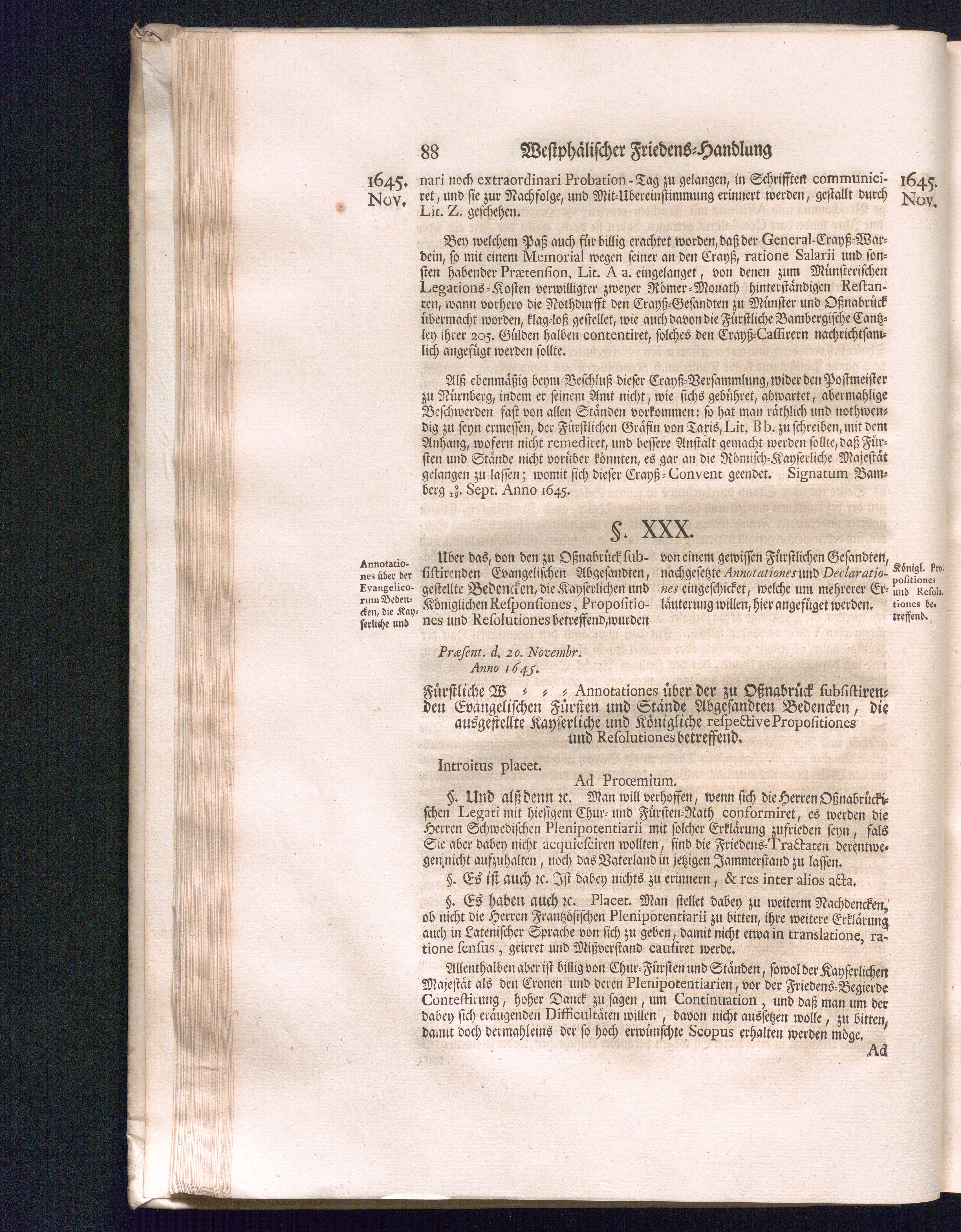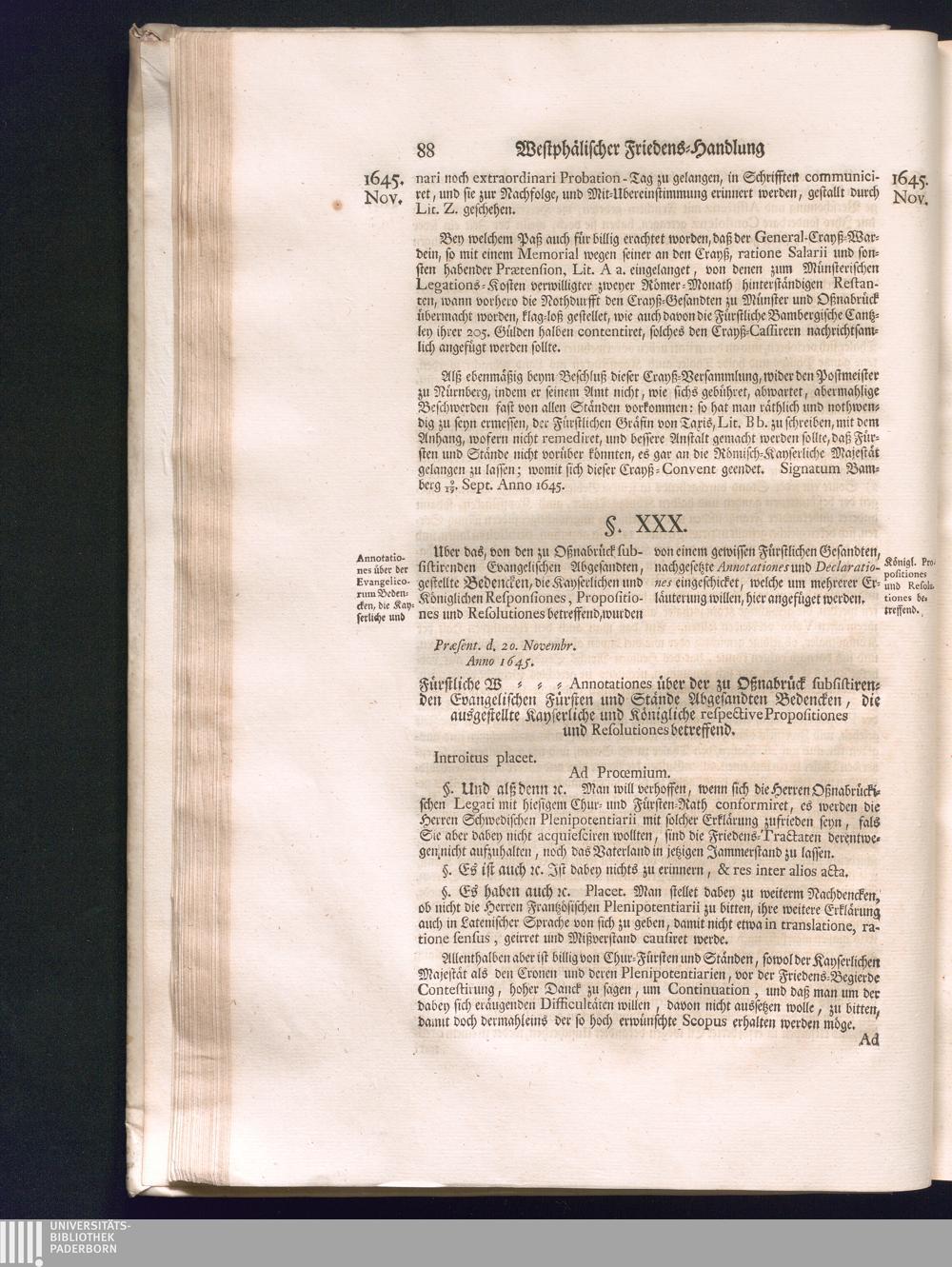 Zweyter Theil (1734) Worinnen enthalten, was vom Monath October Anno 1645. biß in den Monath Martium Ann. 1646. zwischen Jhro Römisch-Kayserlichen Majestät, dann den Beyden Cronen Franckreich und Schweden, ingleichen des Heiligen Römischen Reichs Chur-Fürsten, Fürsten und Ständen, zu Oßnabrück und Münster gehandelt worden