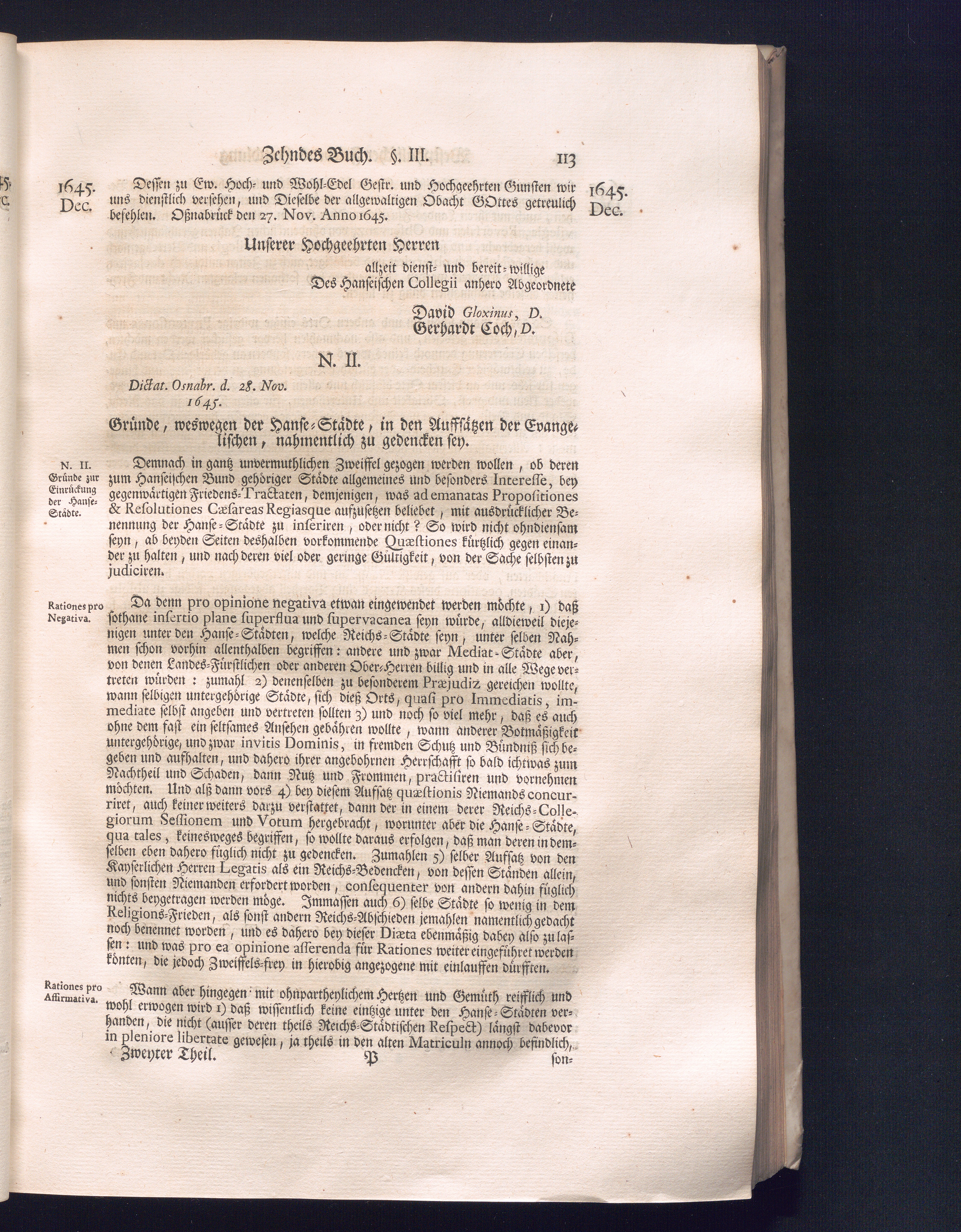 Zweyter Theil (1734) Worinnen enthalten, was vom Monath October Anno 1645. biß in den Monath Martium Ann. 1646. zwischen Jhro Römisch-Kayserlichen Majestät, dann den Beyden Cronen Franckreich und Schweden, ingleichen des Heiligen Römischen Reichs Chur-Fürsten, Fürsten und Ständen, zu Oßnabrück und Münster gehandelt worden