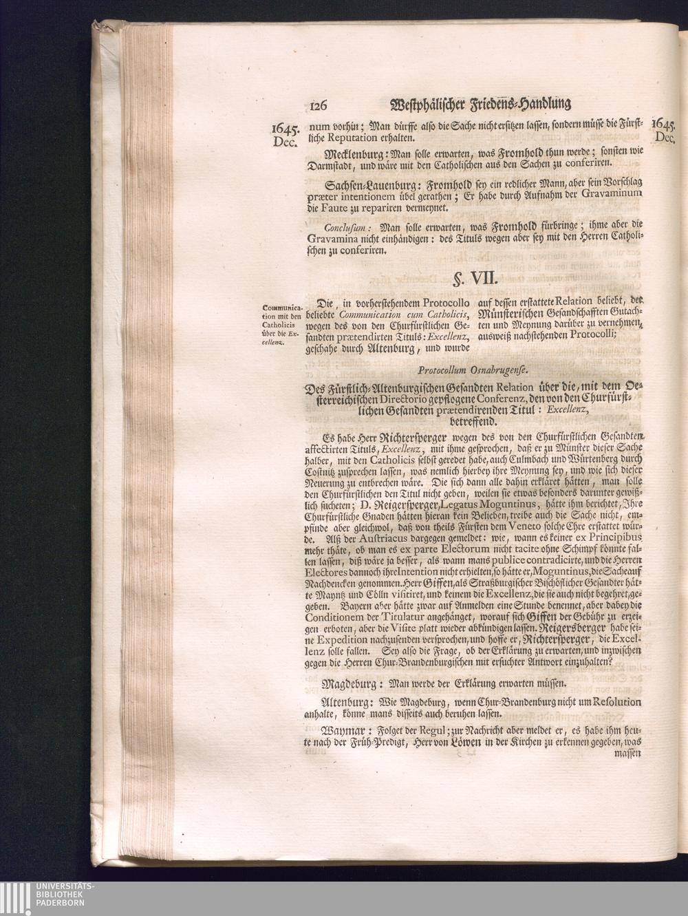 Zweyter Theil (1734) Worinnen enthalten, was vom Monath October Anno 1645. biß in den Monath Martium Ann. 1646. zwischen Jhro Römisch-Kayserlichen Majestät, dann den Beyden Cronen Franckreich und Schweden, ingleichen des Heiligen Römischen Reichs Chur-Fürsten, Fürsten und Ständen, zu Oßnabrück und Münster gehandelt worden