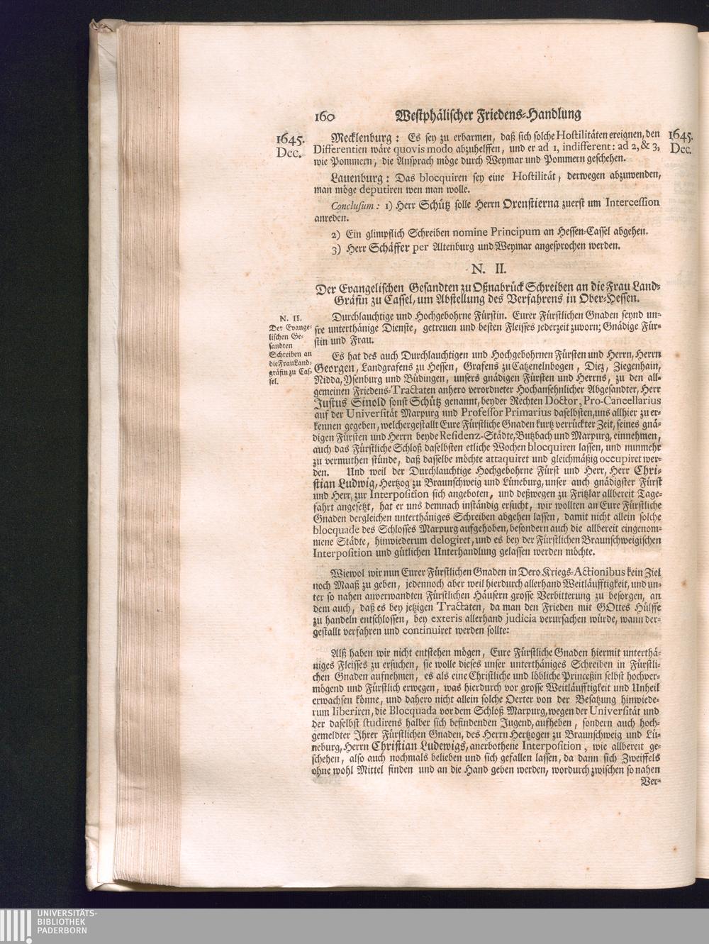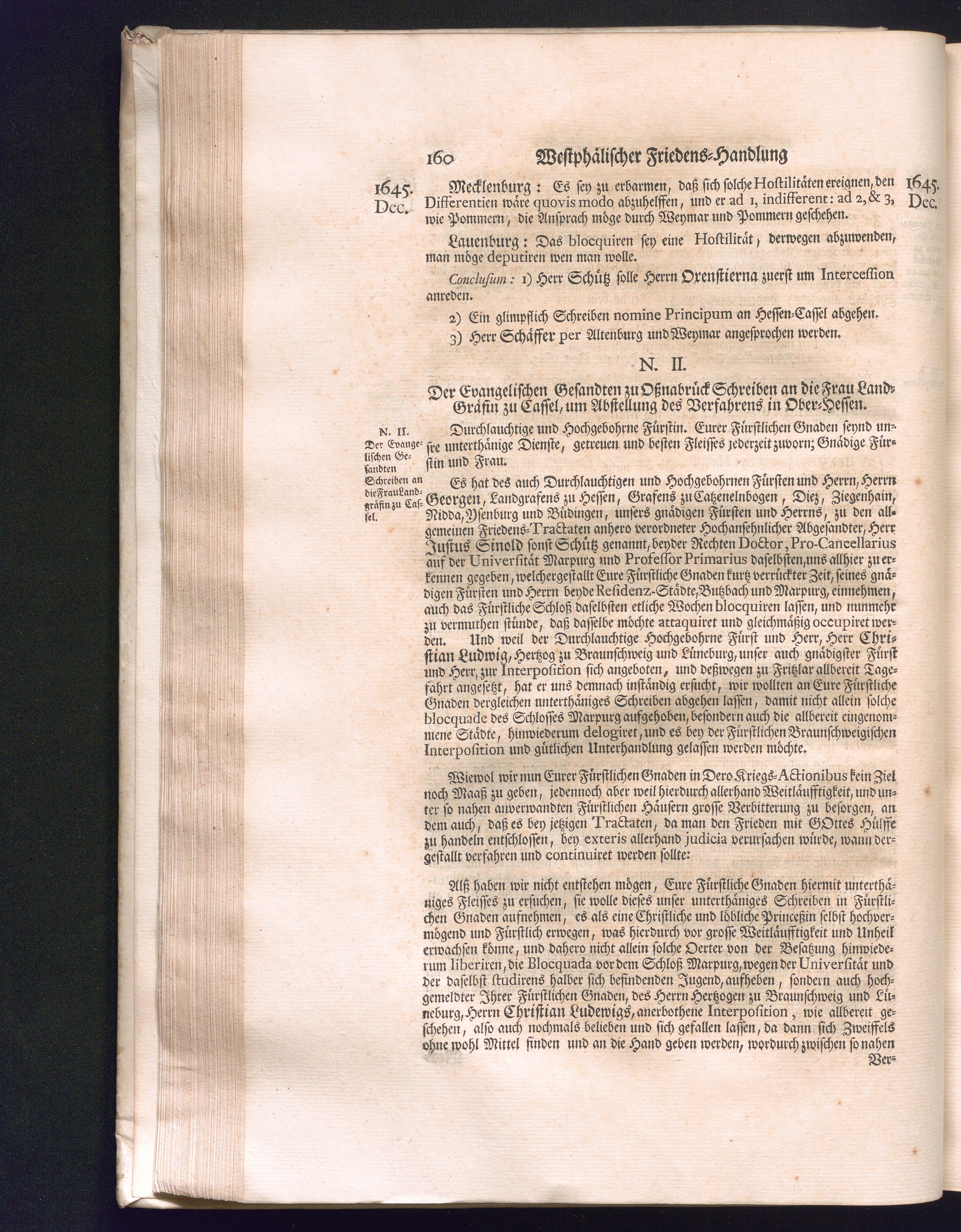 Zweyter Theil (1734) Worinnen enthalten, was vom Monath October Anno 1645. biß in den Monath Martium Ann. 1646. zwischen Jhro Römisch-Kayserlichen Majestät, dann den Beyden Cronen Franckreich und Schweden, ingleichen des Heiligen Römischen Reichs Chur-Fürsten, Fürsten und Ständen, zu Oßnabrück und Münster gehandelt worden