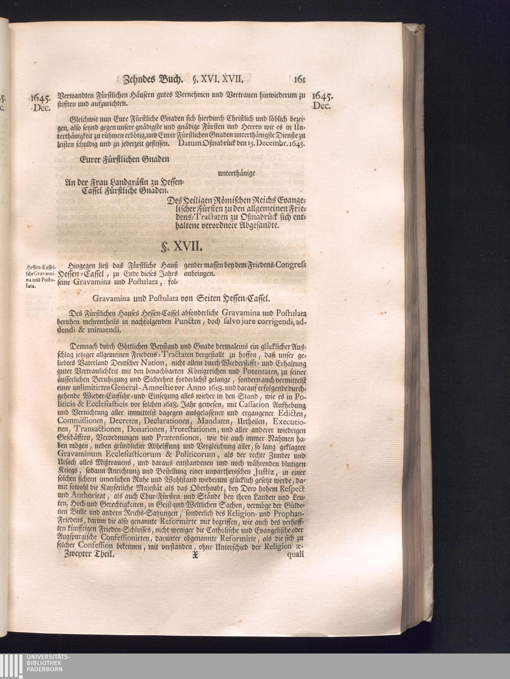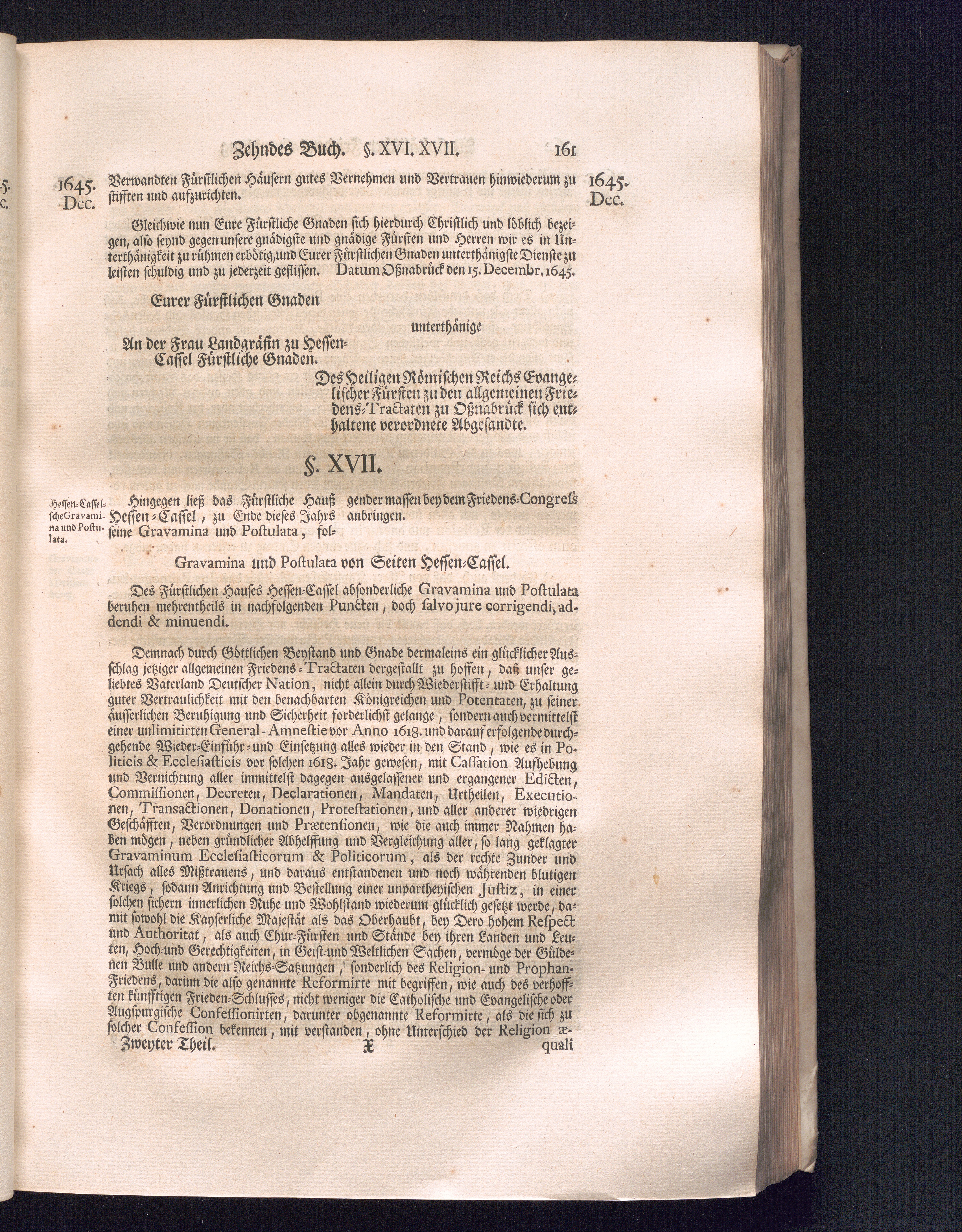 Zweyter Theil (1734) Worinnen enthalten, was vom Monath October Anno 1645. biß in den Monath Martium Ann. 1646. zwischen Jhro Römisch-Kayserlichen Majestät, dann den Beyden Cronen Franckreich und Schweden, ingleichen des Heiligen Römischen Reichs Chur-Fürsten, Fürsten und Ständen, zu Oßnabrück und Münster gehandelt worden