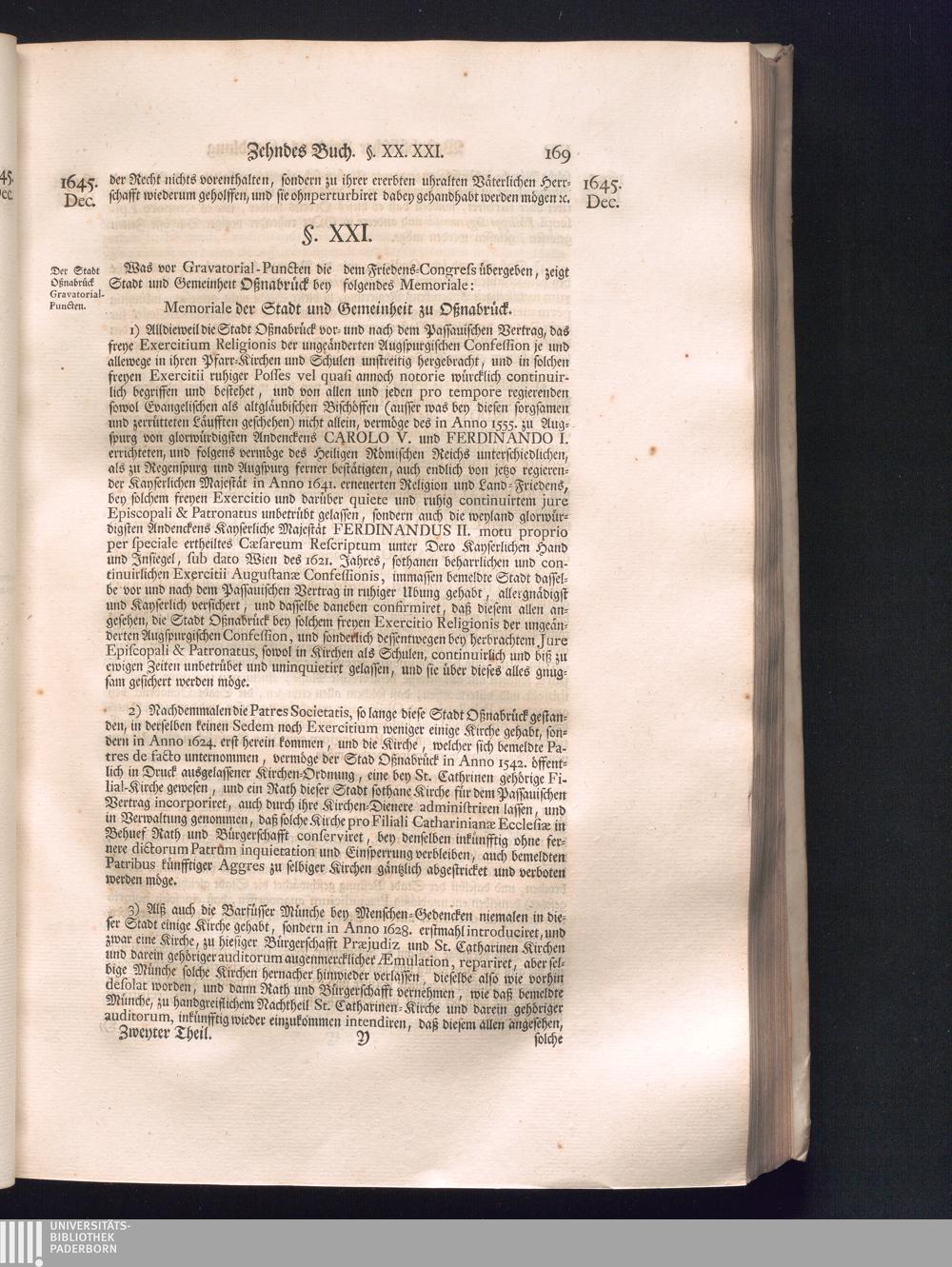 Zweyter Theil (1734) Worinnen enthalten, was vom Monath October Anno 1645. biß in den Monath Martium Ann. 1646. zwischen Jhro Römisch-Kayserlichen Majestät, dann den Beyden Cronen Franckreich und Schweden, ingleichen des Heiligen Römischen Reichs Chur-Fürsten, Fürsten und Ständen, zu Oßnabrück und Münster gehandelt worden