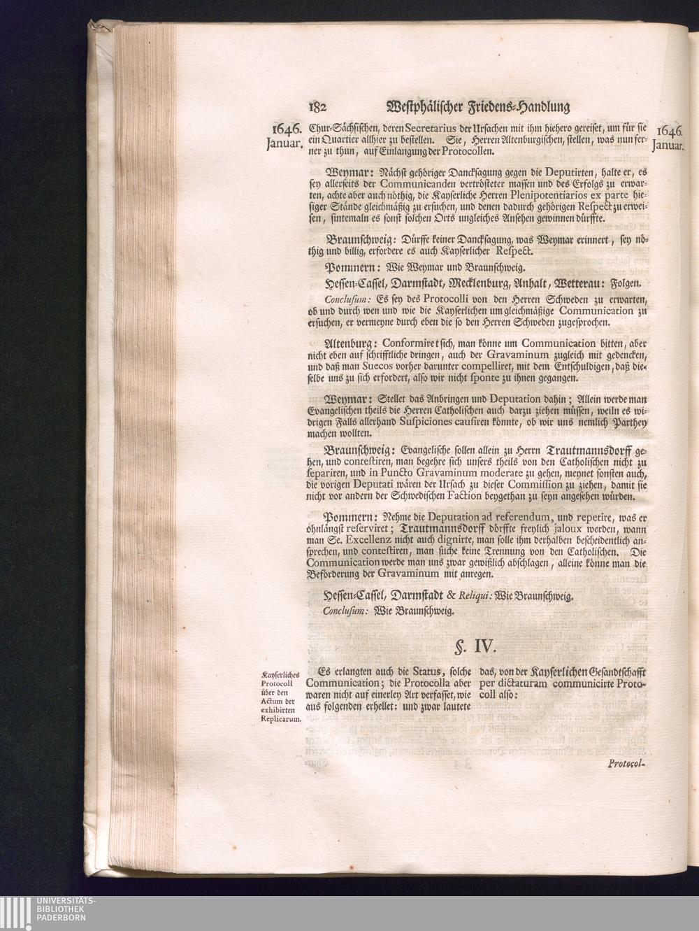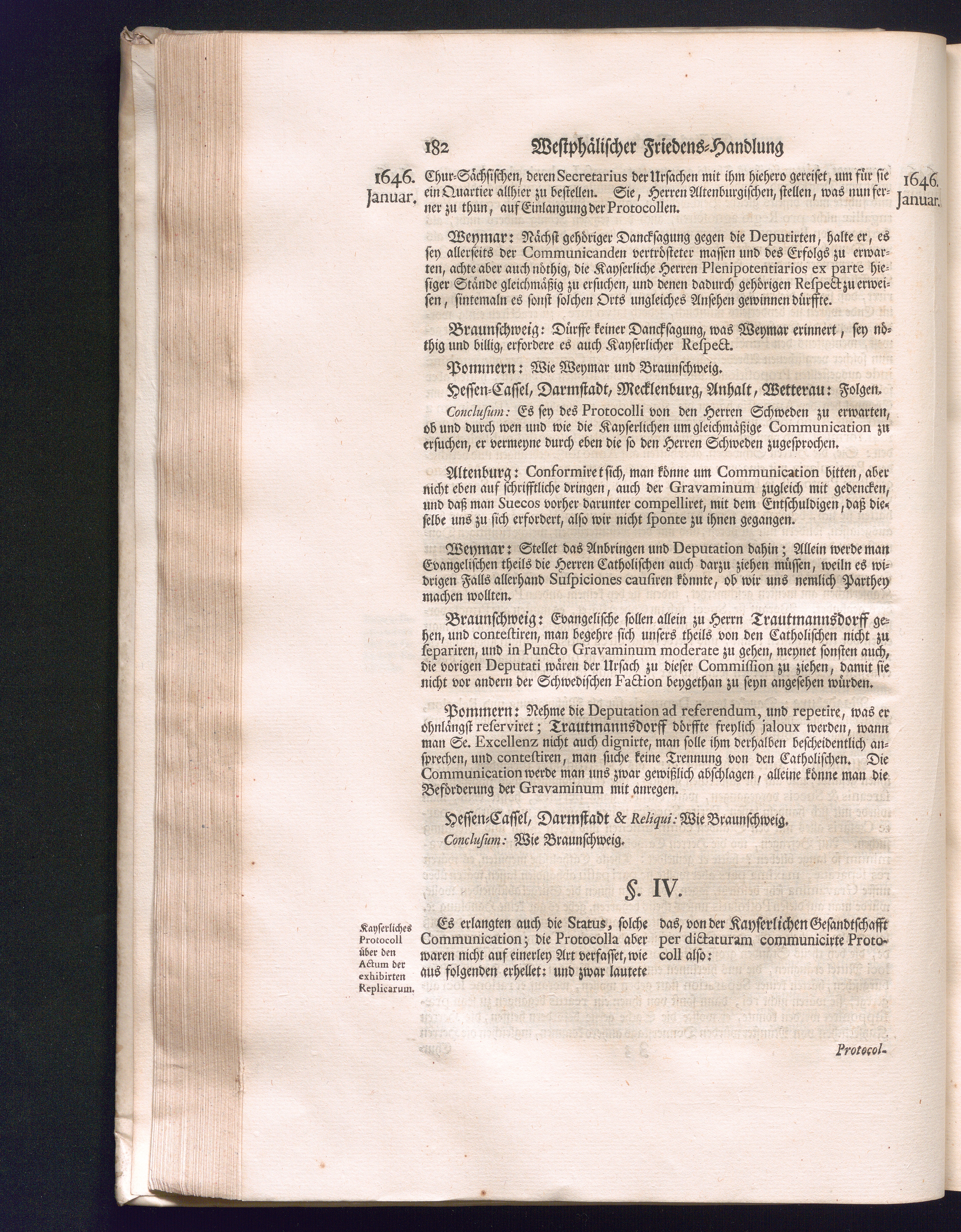 Zweyter Theil (1734) Worinnen enthalten, was vom Monath October Anno 1645. biß in den Monath Martium Ann. 1646. zwischen Jhro Römisch-Kayserlichen Majestät, dann den Beyden Cronen Franckreich und Schweden, ingleichen des Heiligen Römischen Reichs Chur-Fürsten, Fürsten und Ständen, zu Oßnabrück und Münster gehandelt worden