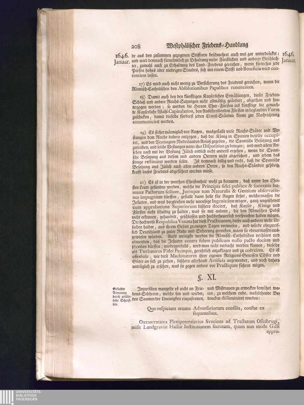 Zweyter Theil (1734) Worinnen enthalten, was vom Monath October Anno 1645. biß in den Monath Martium Ann. 1646. zwischen Jhro Römisch-Kayserlichen Majestät, dann den Beyden Cronen Franckreich und Schweden, ingleichen des Heiligen Römischen Reichs Chur-Fürsten, Fürsten und Ständen, zu Oßnabrück und Münster gehandelt worden