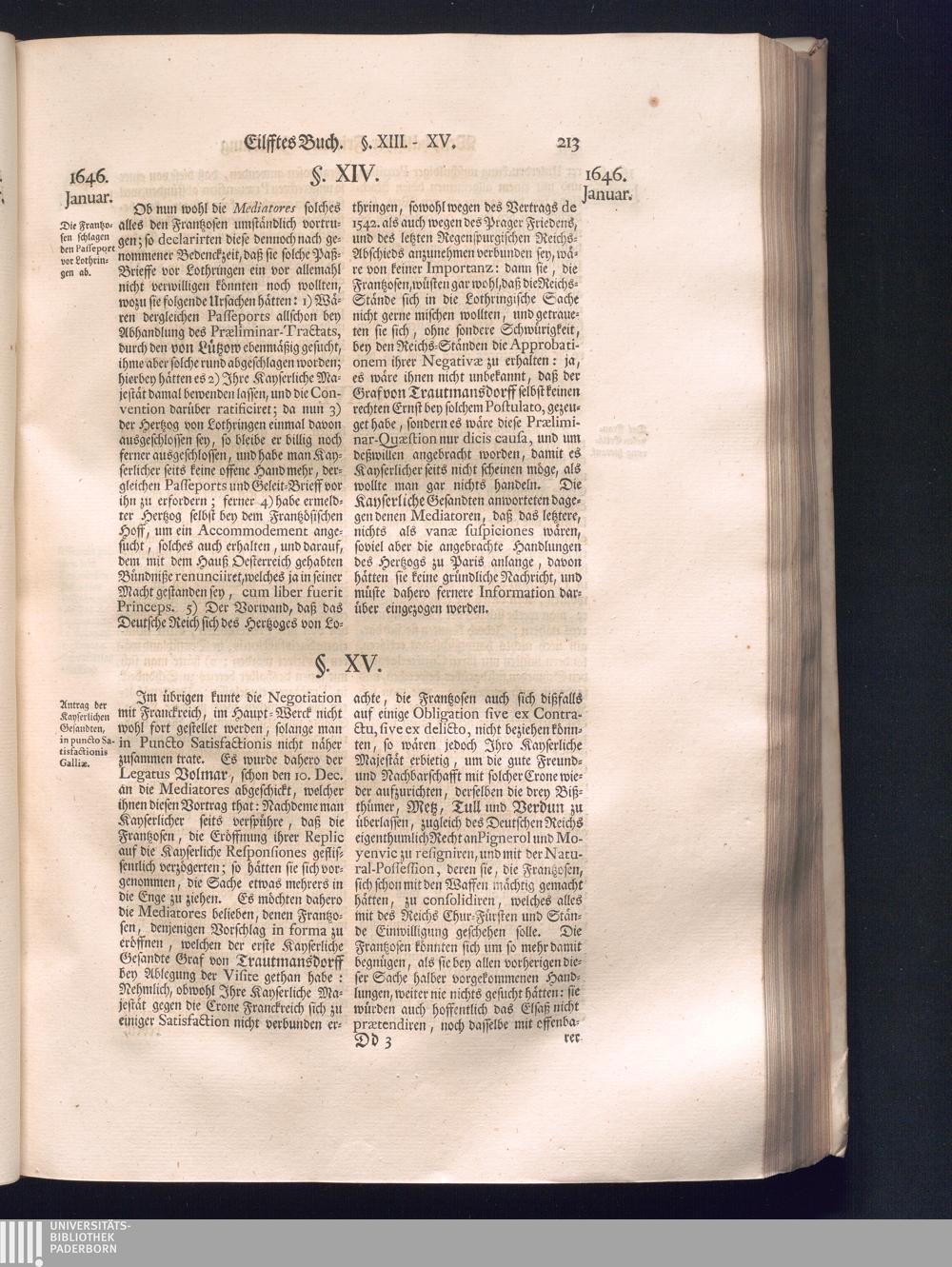 Zweyter Theil (1734) Worinnen enthalten, was vom Monath October Anno 1645. biß in den Monath Martium Ann. 1646. zwischen Jhro Römisch-Kayserlichen Majestät, dann den Beyden Cronen Franckreich und Schweden, ingleichen des Heiligen Römischen Reichs Chur-Fürsten, Fürsten und Ständen, zu Oßnabrück und Münster gehandelt worden