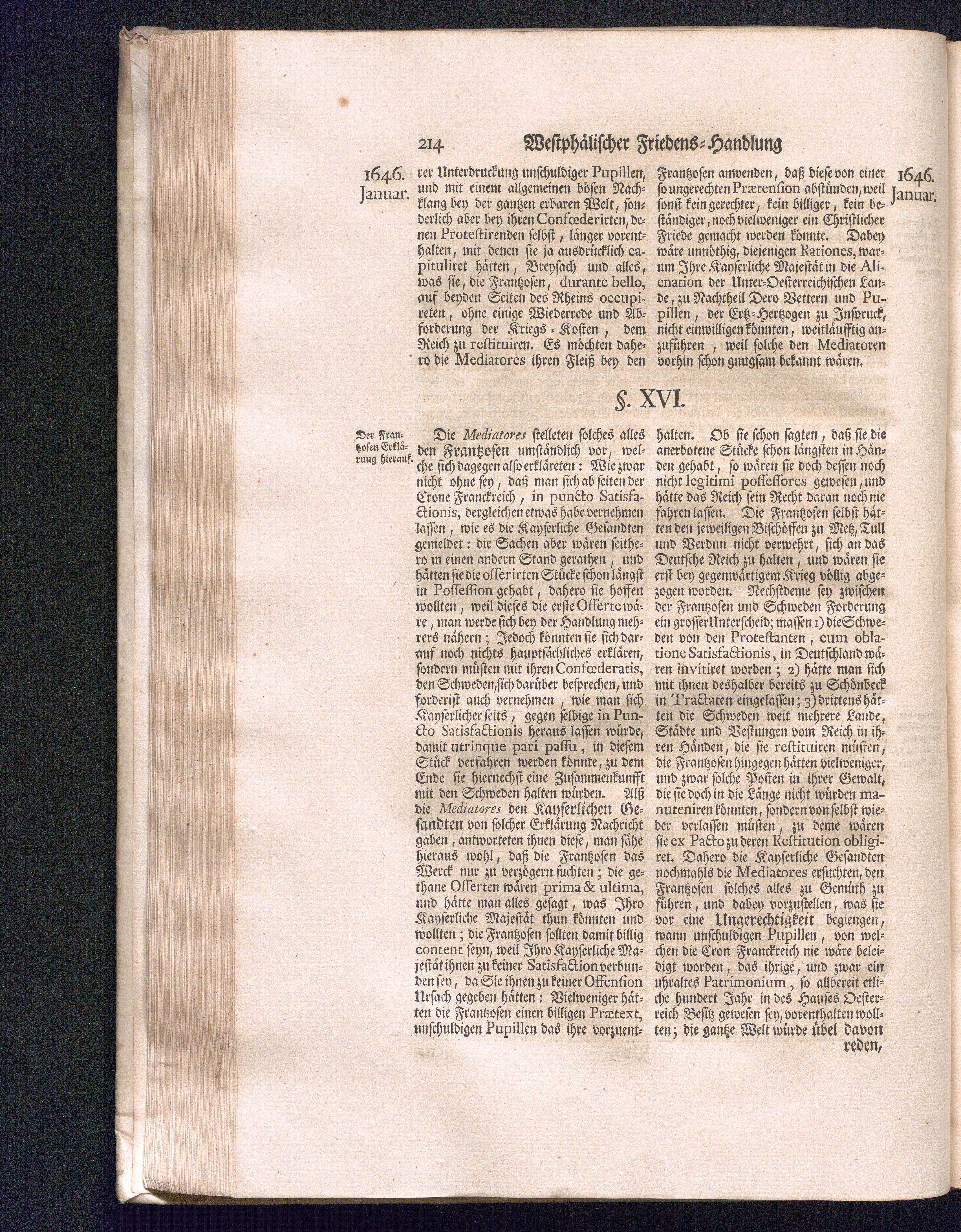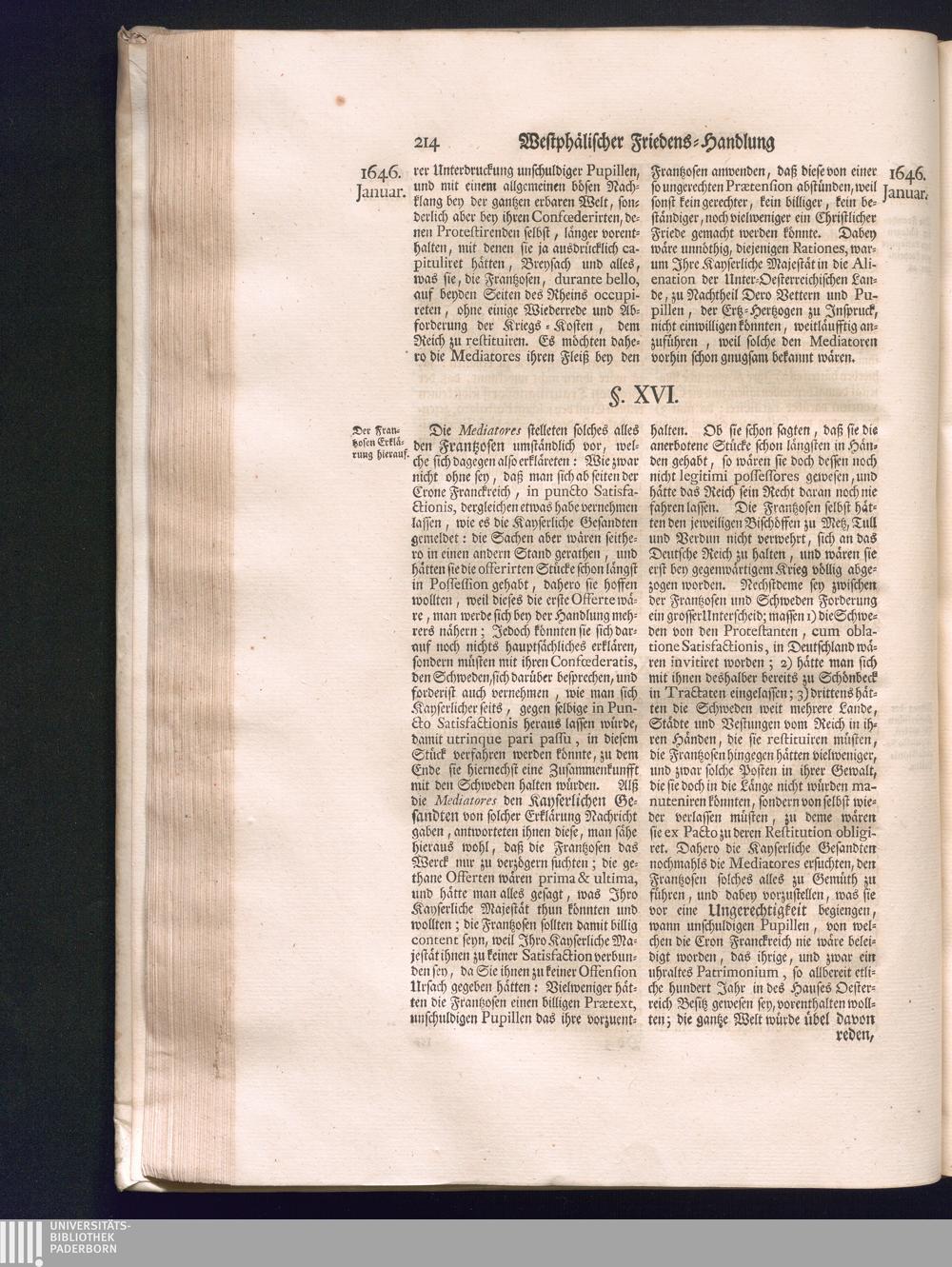 Zweyter Theil (1734) Worinnen enthalten, was vom Monath October Anno 1645. biß in den Monath Martium Ann. 1646. zwischen Jhro Römisch-Kayserlichen Majestät, dann den Beyden Cronen Franckreich und Schweden, ingleichen des Heiligen Römischen Reichs Chur-Fürsten, Fürsten und Ständen, zu Oßnabrück und Münster gehandelt worden