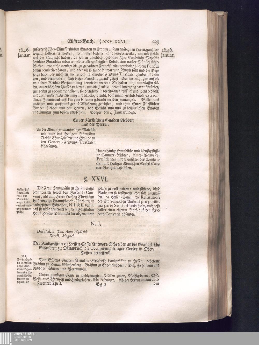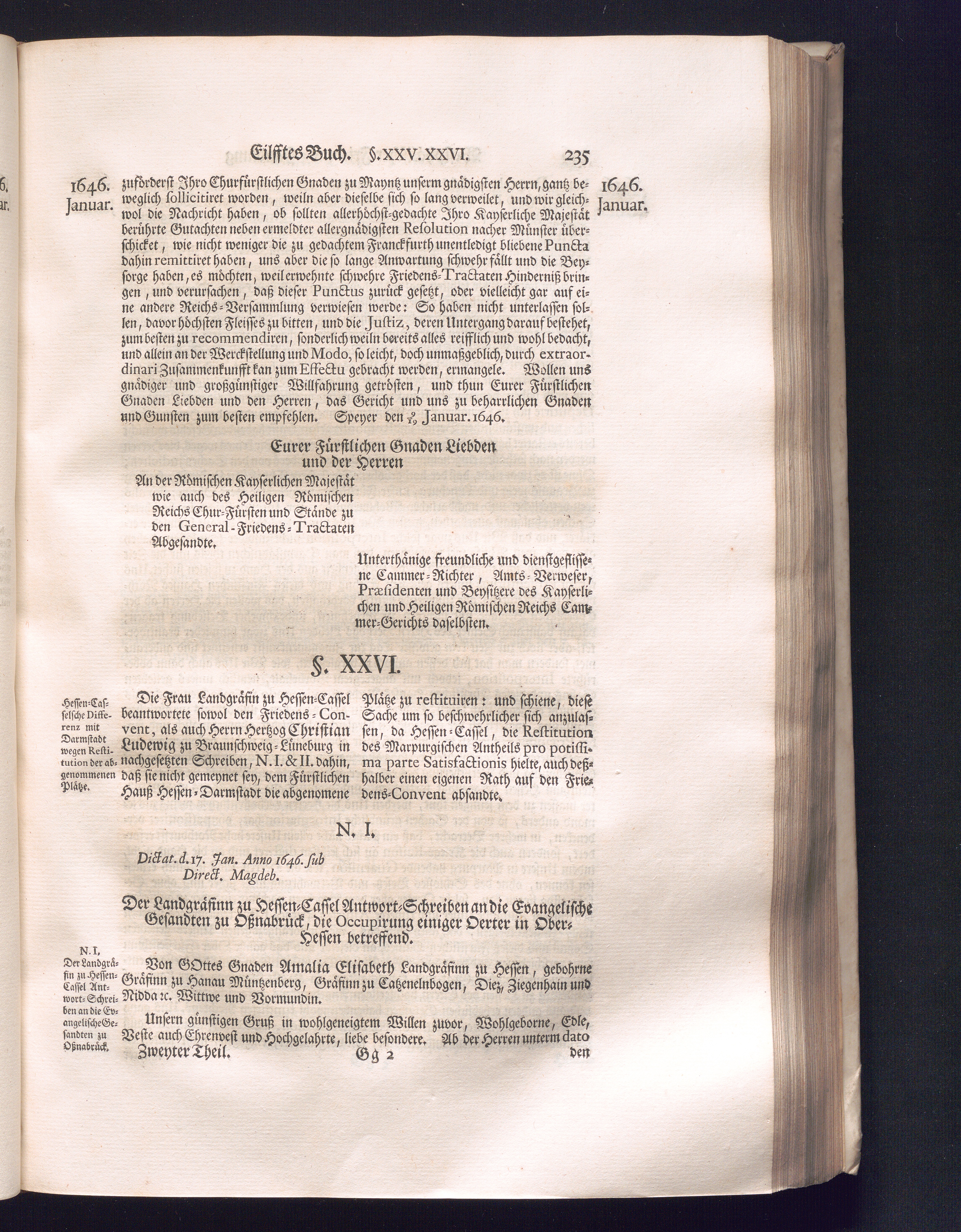 Zweyter Theil (1734) Worinnen enthalten, was vom Monath October Anno 1645. biß in den Monath Martium Ann. 1646. zwischen Jhro Römisch-Kayserlichen Majestät, dann den Beyden Cronen Franckreich und Schweden, ingleichen des Heiligen Römischen Reichs Chur-Fürsten, Fürsten und Ständen, zu Oßnabrück und Münster gehandelt worden
