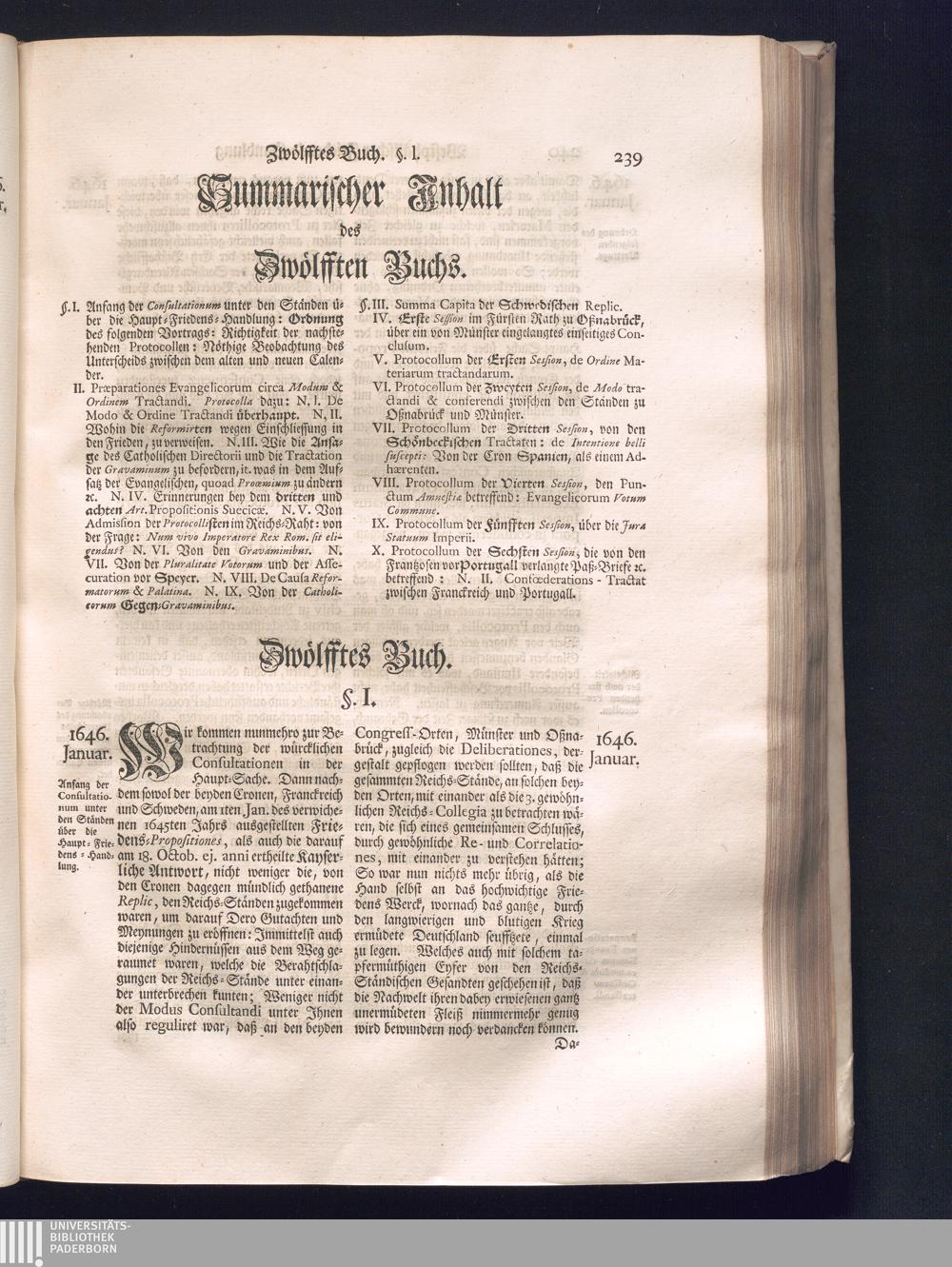 Zweyter Theil (1734) Worinnen enthalten, was vom Monath October Anno 1645. biß in den Monath Martium Ann. 1646. zwischen Jhro Römisch-Kayserlichen Majestät, dann den Beyden Cronen Franckreich und Schweden, ingleichen des Heiligen Römischen Reichs Chur-Fürsten, Fürsten und Ständen, zu Oßnabrück und Münster gehandelt worden