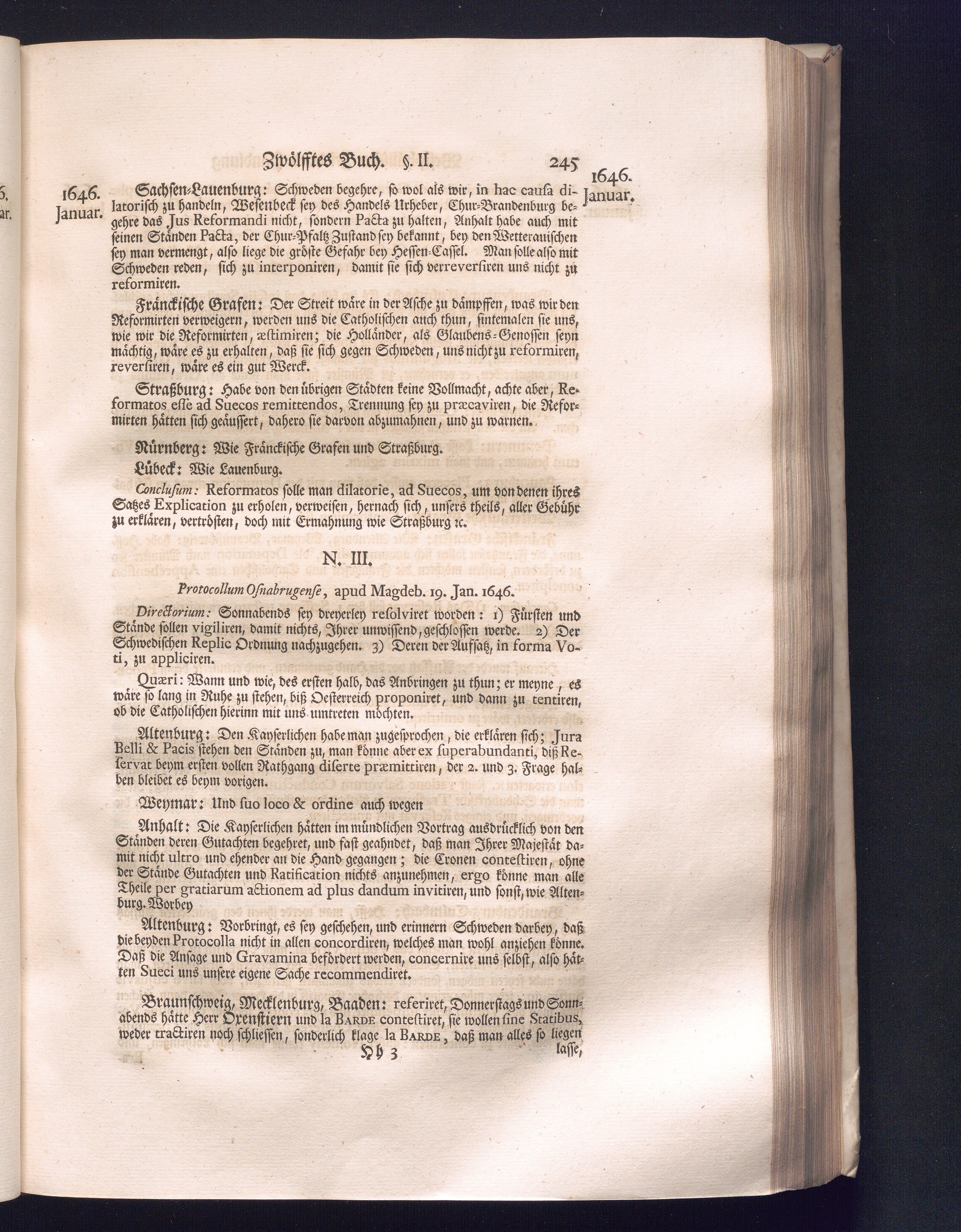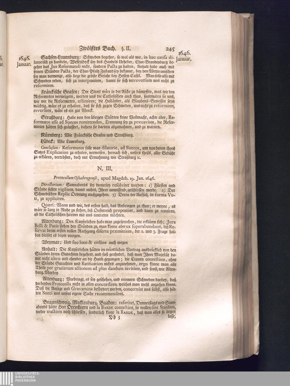 Zweyter Theil (1734) Worinnen enthalten, was vom Monath October Anno 1645. biß in den Monath Martium Ann. 1646. zwischen Jhro Römisch-Kayserlichen Majestät, dann den Beyden Cronen Franckreich und Schweden, ingleichen des Heiligen Römischen Reichs Chur-Fürsten, Fürsten und Ständen, zu Oßnabrück und Münster gehandelt worden