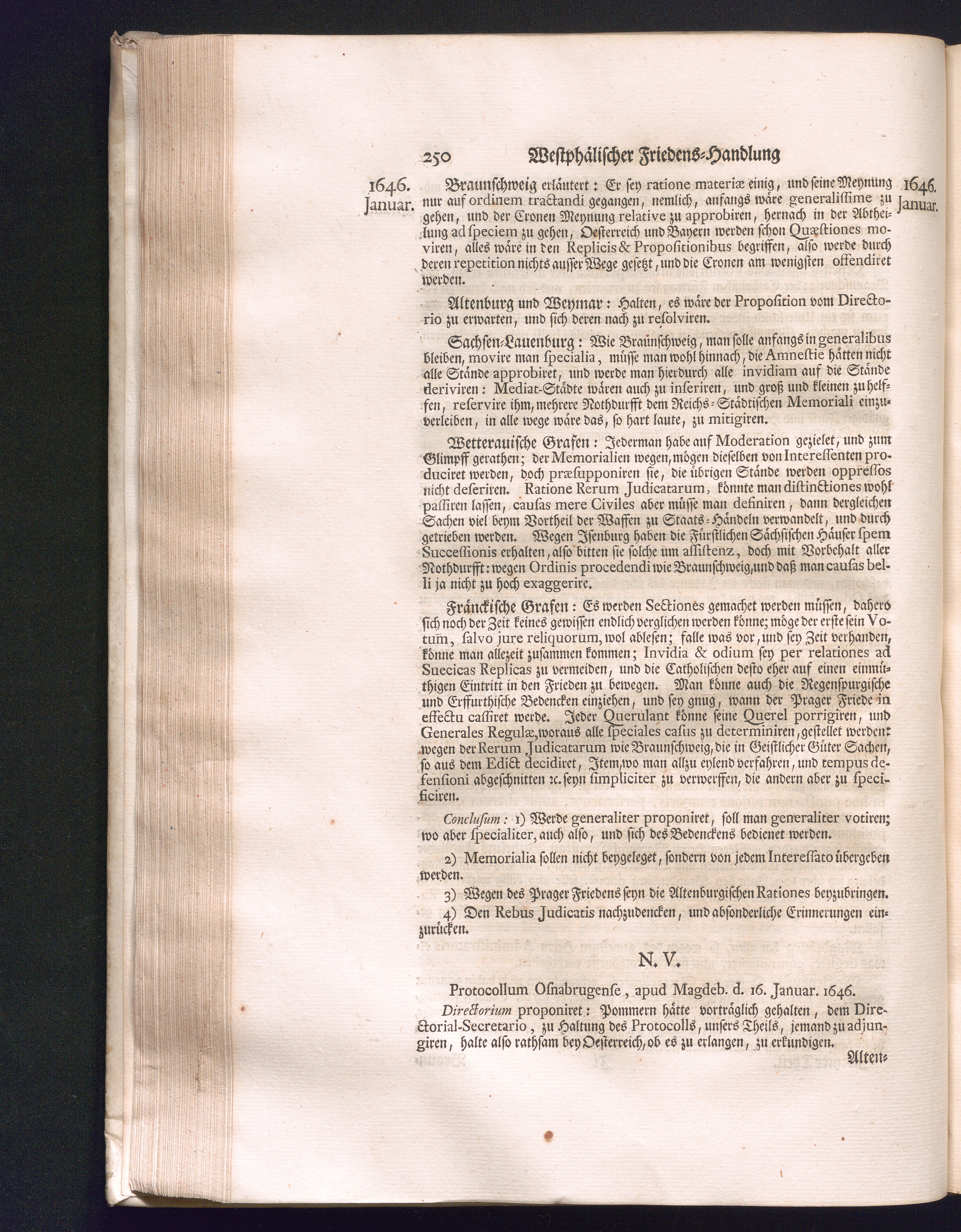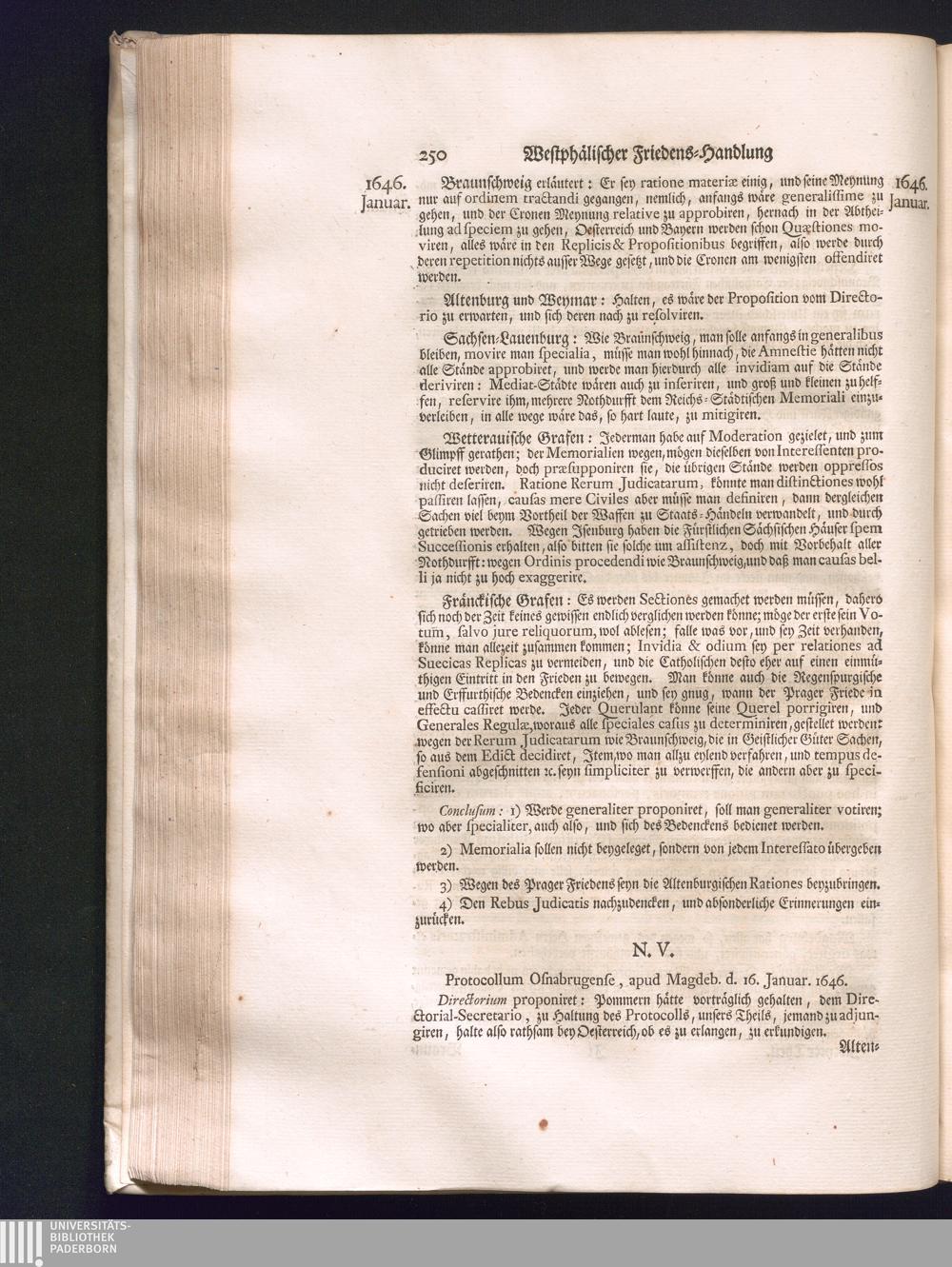 Zweyter Theil (1734) Worinnen enthalten, was vom Monath October Anno 1645. biß in den Monath Martium Ann. 1646. zwischen Jhro Römisch-Kayserlichen Majestät, dann den Beyden Cronen Franckreich und Schweden, ingleichen des Heiligen Römischen Reichs Chur-Fürsten, Fürsten und Ständen, zu Oßnabrück und Münster gehandelt worden