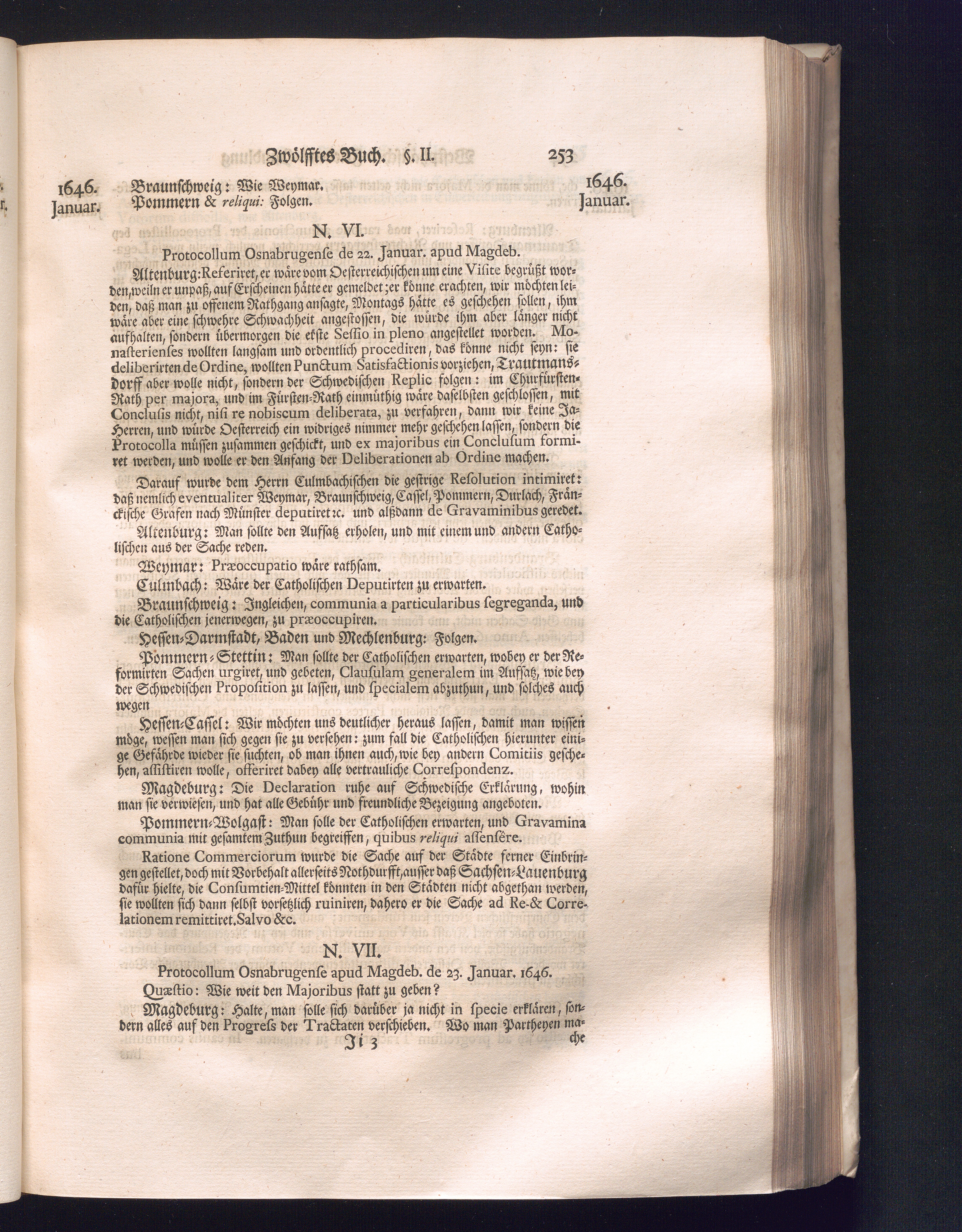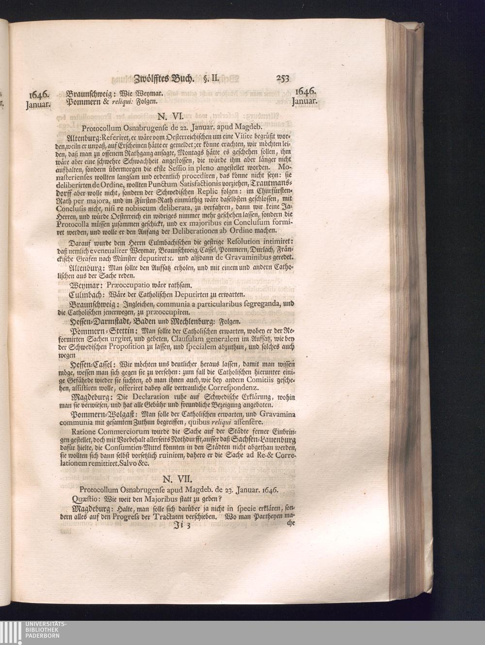 Zweyter Theil (1734) Worinnen enthalten, was vom Monath October Anno 1645. biß in den Monath Martium Ann. 1646. zwischen Jhro Römisch-Kayserlichen Majestät, dann den Beyden Cronen Franckreich und Schweden, ingleichen des Heiligen Römischen Reichs Chur-Fürsten, Fürsten und Ständen, zu Oßnabrück und Münster gehandelt worden