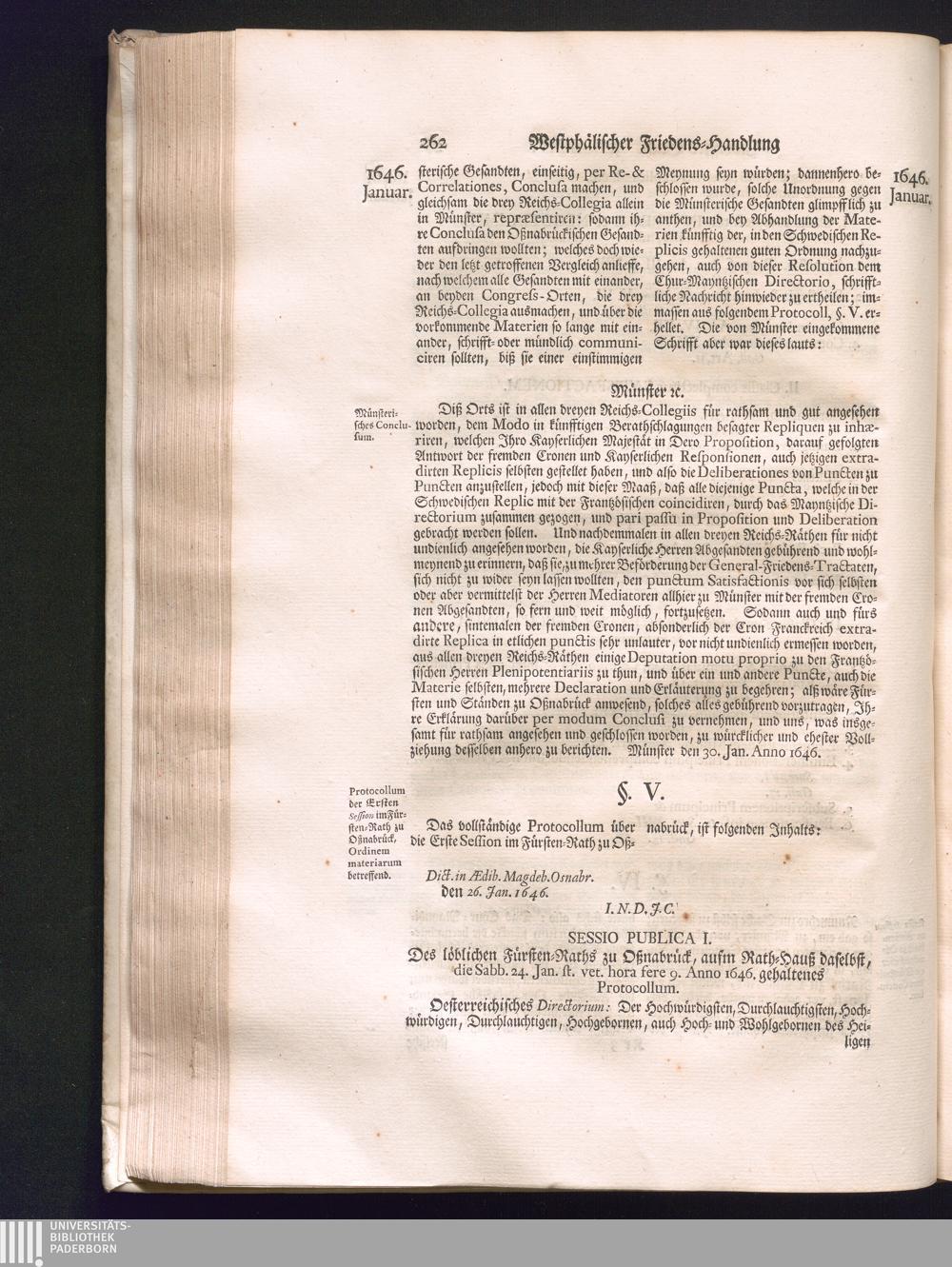 Zweyter Theil (1734) Worinnen enthalten, was vom Monath October Anno 1645. biß in den Monath Martium Ann. 1646. zwischen Jhro Römisch-Kayserlichen Majestät, dann den Beyden Cronen Franckreich und Schweden, ingleichen des Heiligen Römischen Reichs Chur-Fürsten, Fürsten und Ständen, zu Oßnabrück und Münster gehandelt worden