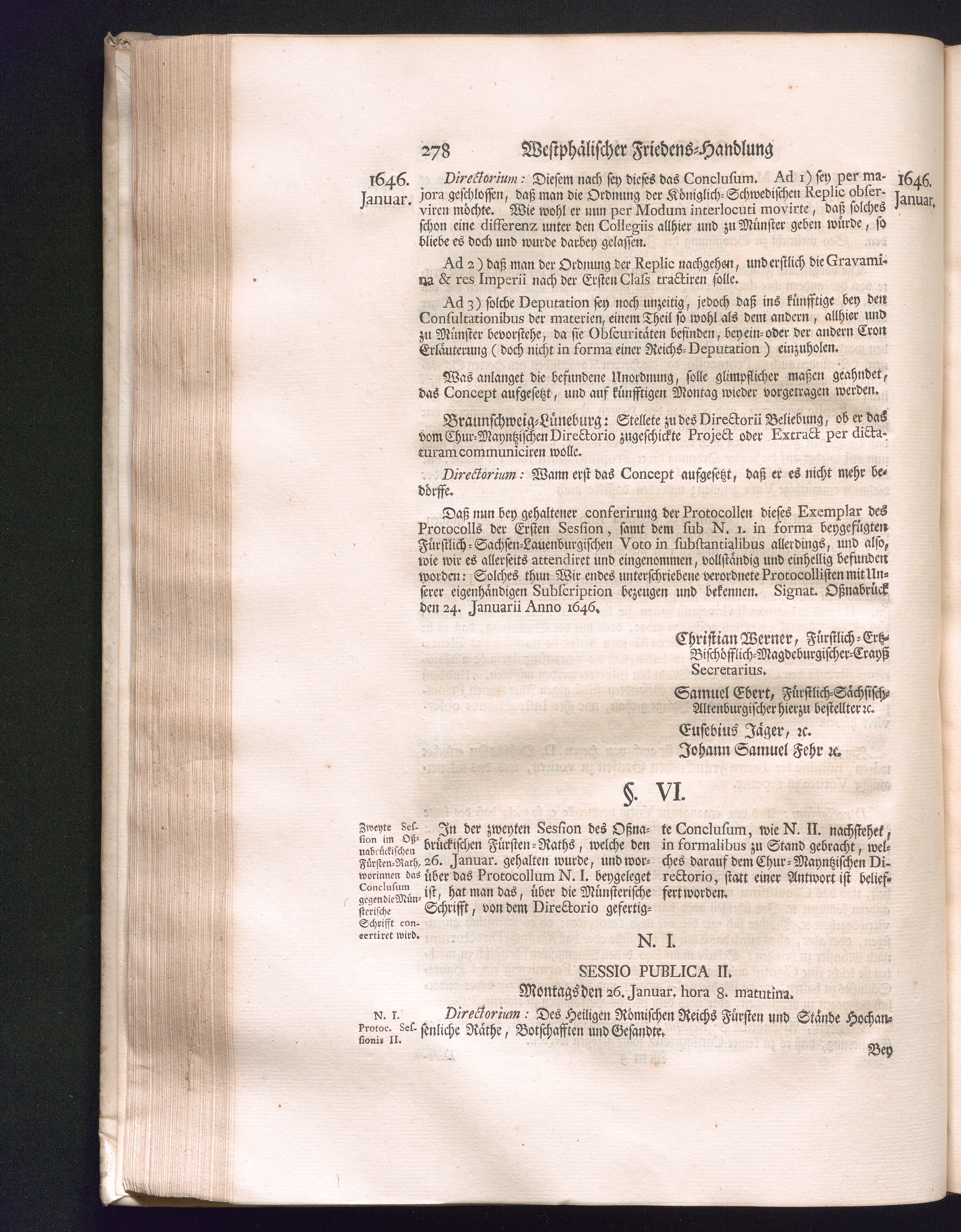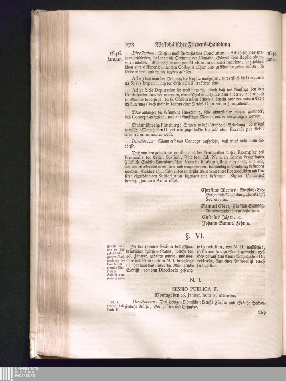 Zweyter Theil (1734) Worinnen enthalten, was vom Monath October Anno 1645. biß in den Monath Martium Ann. 1646. zwischen Jhro Römisch-Kayserlichen Majestät, dann den Beyden Cronen Franckreich und Schweden, ingleichen des Heiligen Römischen Reichs Chur-Fürsten, Fürsten und Ständen, zu Oßnabrück und Münster gehandelt worden