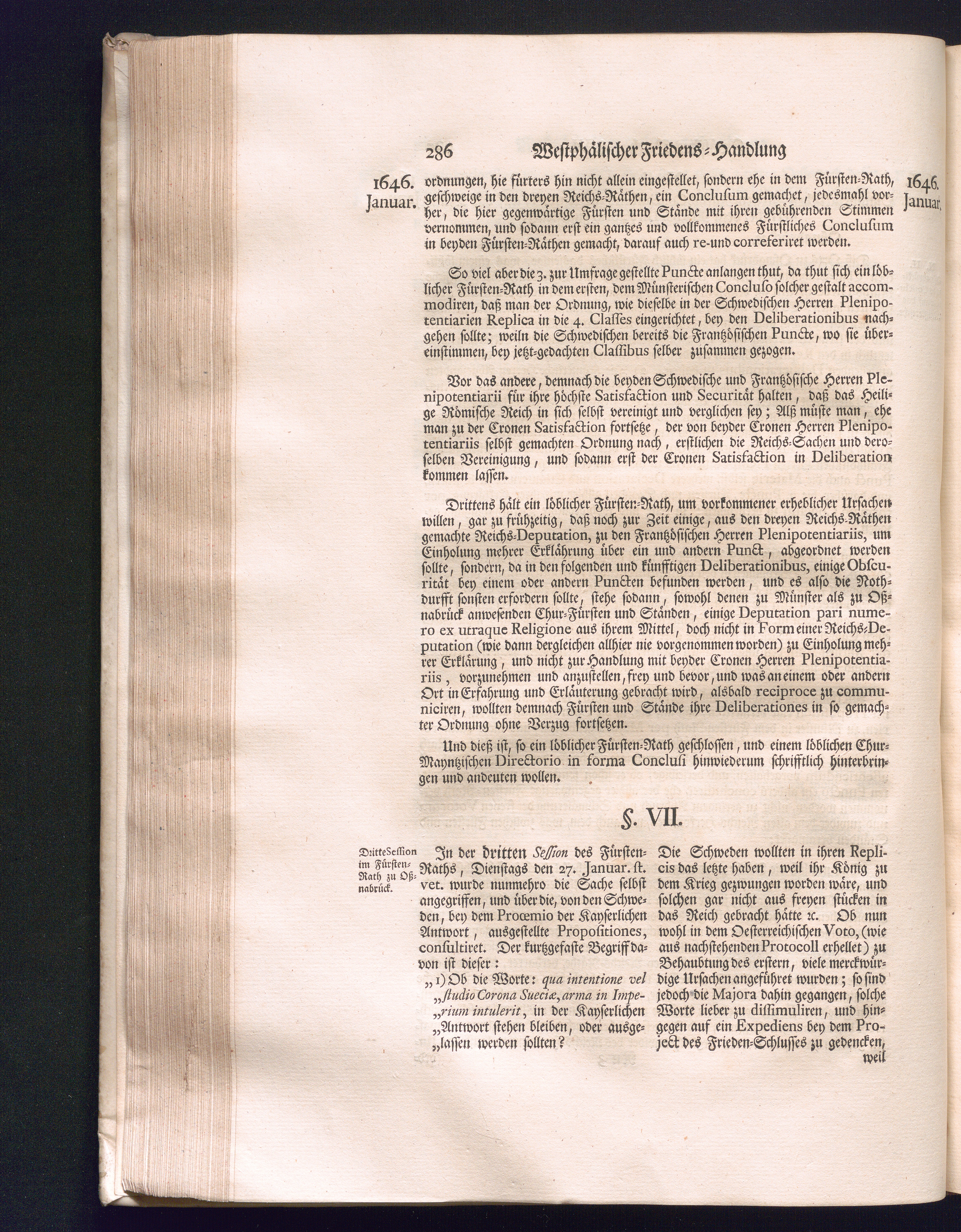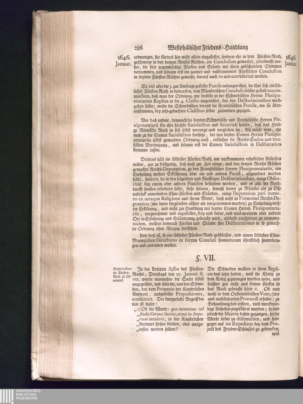 Zweyter Theil (1734) Worinnen enthalten, was vom Monath October Anno 1645. biß in den Monath Martium Ann. 1646. zwischen Jhro Römisch-Kayserlichen Majestät, dann den Beyden Cronen Franckreich und Schweden, ingleichen des Heiligen Römischen Reichs Chur-Fürsten, Fürsten und Ständen, zu Oßnabrück und Münster gehandelt worden