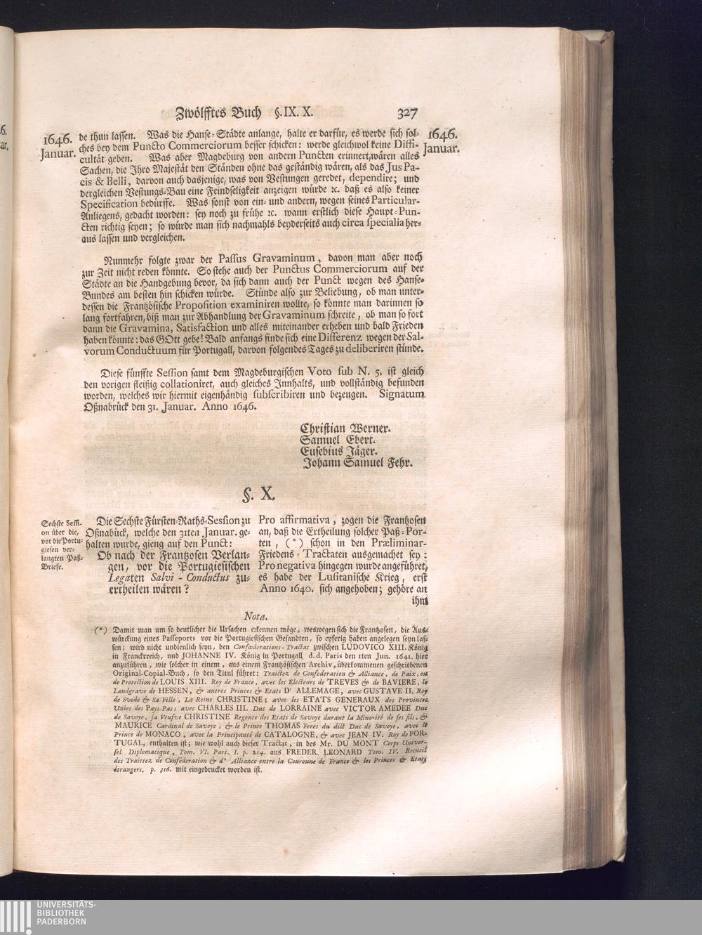 Zweyter Theil (1734) Worinnen enthalten, was vom Monath October Anno 1645. biß in den Monath Martium Ann. 1646. zwischen Jhro Römisch-Kayserlichen Majestät, dann den Beyden Cronen Franckreich und Schweden, ingleichen des Heiligen Römischen Reichs Chur-Fürsten, Fürsten und Ständen, zu Oßnabrück und Münster gehandelt worden