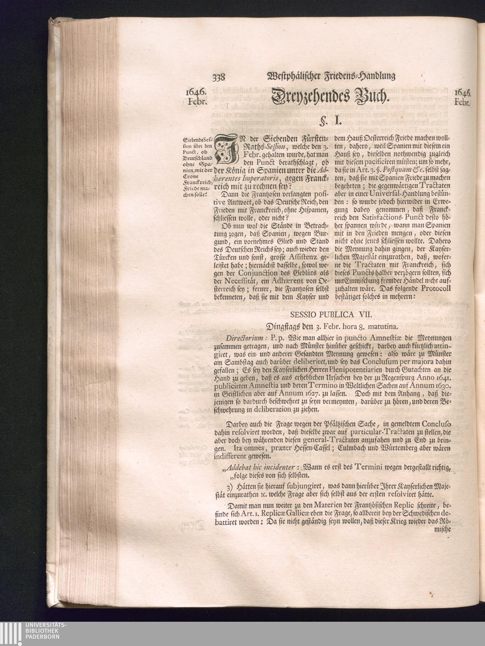 Zweyter Theil (1734) Worinnen enthalten, was vom Monath October Anno 1645. biß in den Monath Martium Ann. 1646. zwischen Jhro Römisch-Kayserlichen Majestät, dann den Beyden Cronen Franckreich und Schweden, ingleichen des Heiligen Römischen Reichs Chur-Fürsten, Fürsten und Ständen, zu Oßnabrück und Münster gehandelt worden