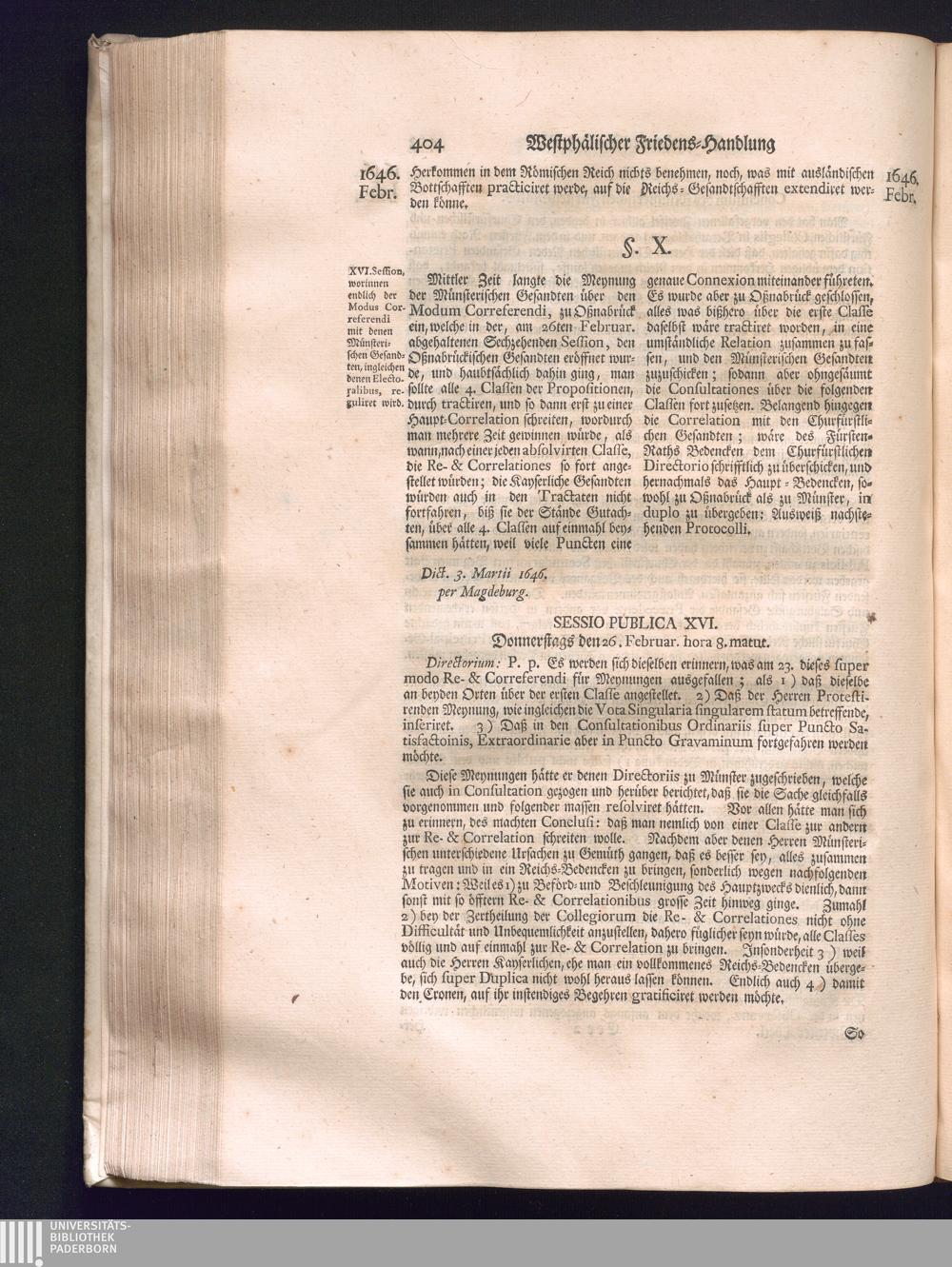 Zweyter Theil (1734) Worinnen enthalten, was vom Monath October Anno 1645. biß in den Monath Martium Ann. 1646. zwischen Jhro Römisch-Kayserlichen Majestät, dann den Beyden Cronen Franckreich und Schweden, ingleichen des Heiligen Römischen Reichs Chur-Fürsten, Fürsten und Ständen, zu Oßnabrück und Münster gehandelt worden
