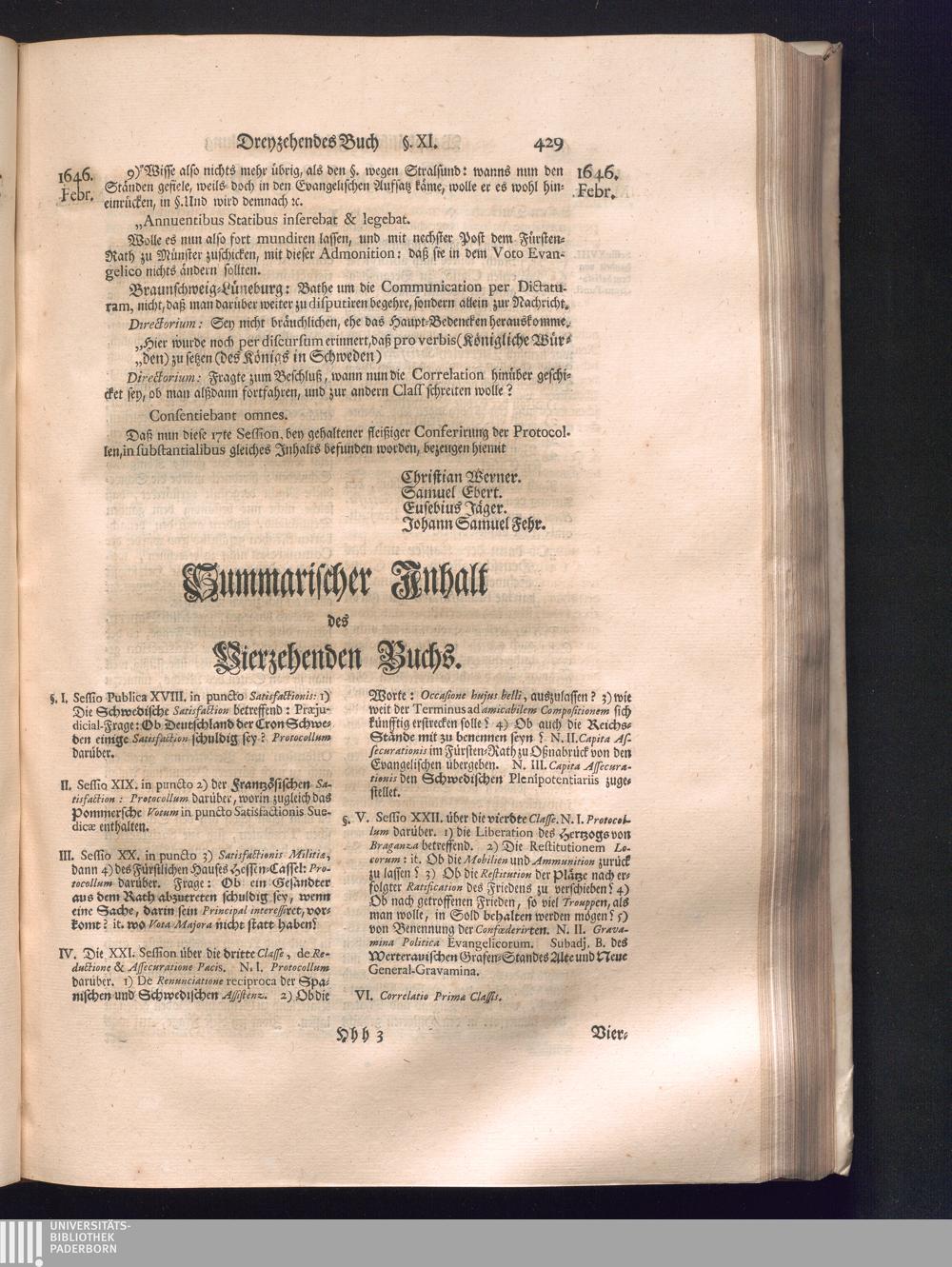 Zweyter Theil (1734) Worinnen enthalten, was vom Monath October Anno 1645. biß in den Monath Martium Ann. 1646. zwischen Jhro Römisch-Kayserlichen Majestät, dann den Beyden Cronen Franckreich und Schweden, ingleichen des Heiligen Römischen Reichs Chur-Fürsten, Fürsten und Ständen, zu Oßnabrück und Münster gehandelt worden